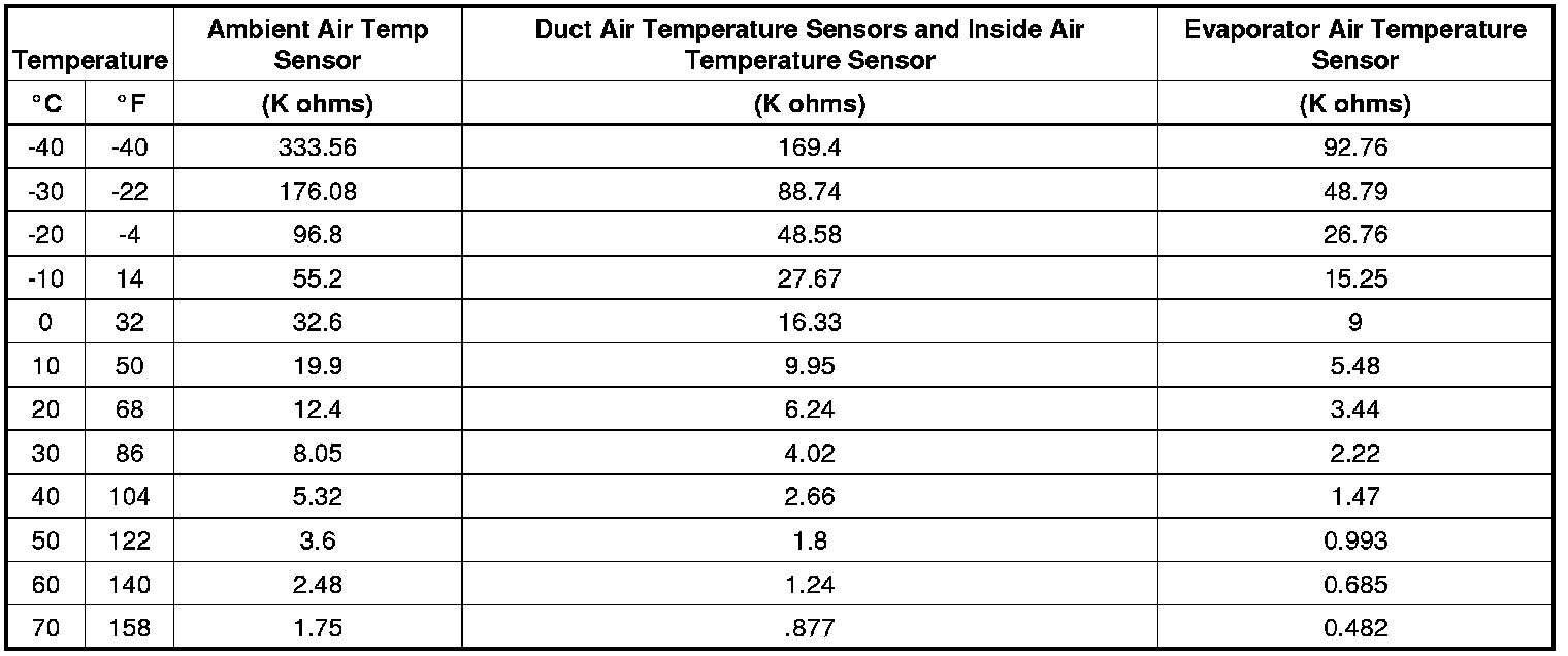 Sensor Resistance Table