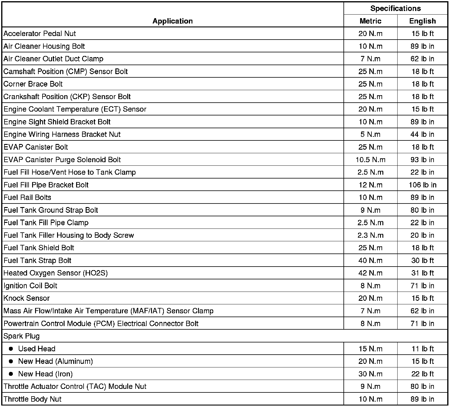 Fastener Tightening Specifications