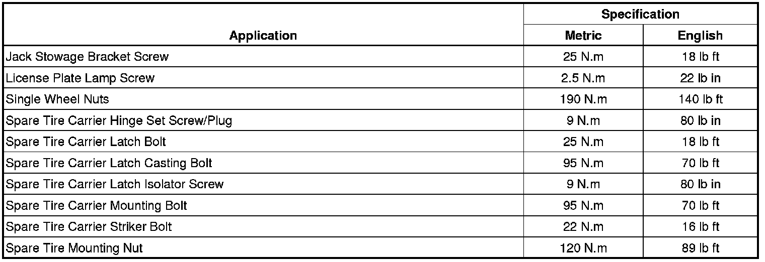 Fastener Tightening Specifications