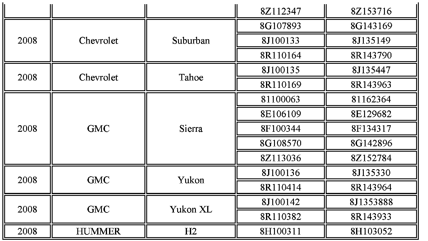 Involved are certain 2008 model year Cadillac DTS, SRX; Chevrolet Avalanche, Silverado, Suburban, Tahoe; GMC Sierra, Yukon, Yukon XL; and HUMMER H2 vehicles built with a touch-screen navigation system and built within the VIN breakpoints shown.