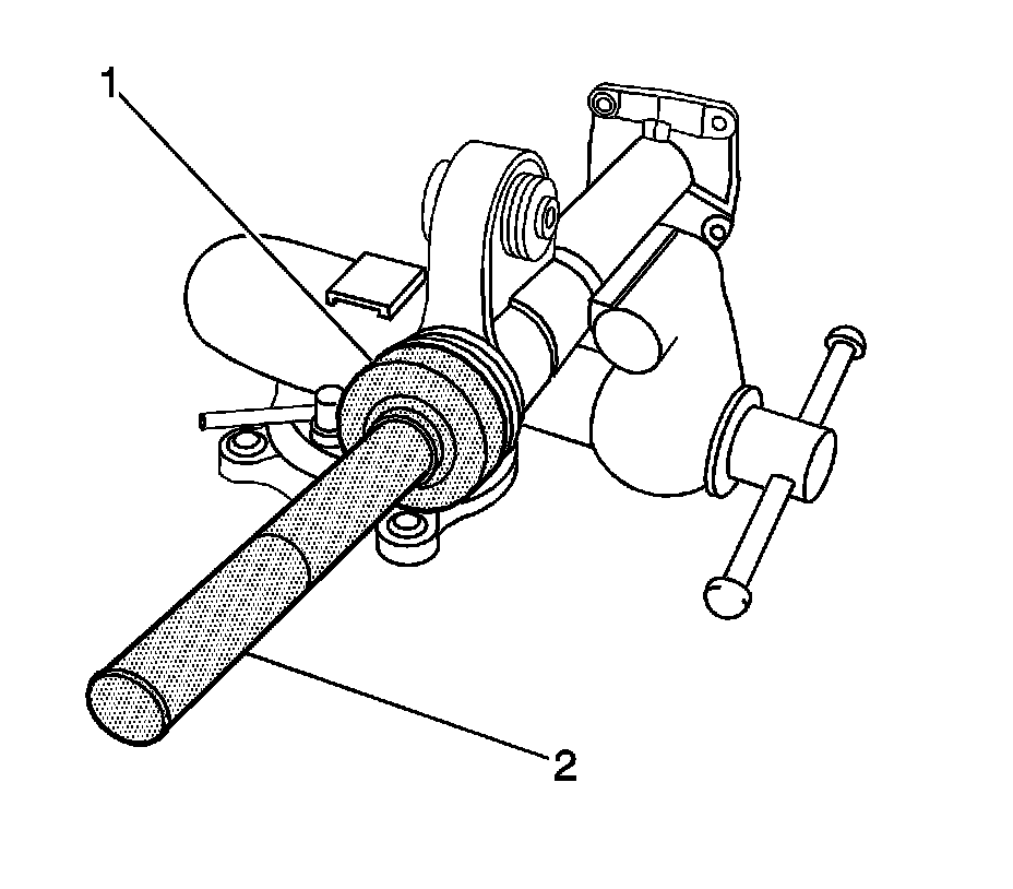 2. Install the bearing with the square shoulder in using the J 36609 (1) and the J 8092 (2).