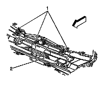 2. Remove the bolts (1) retaining the transmission to the vehicle.