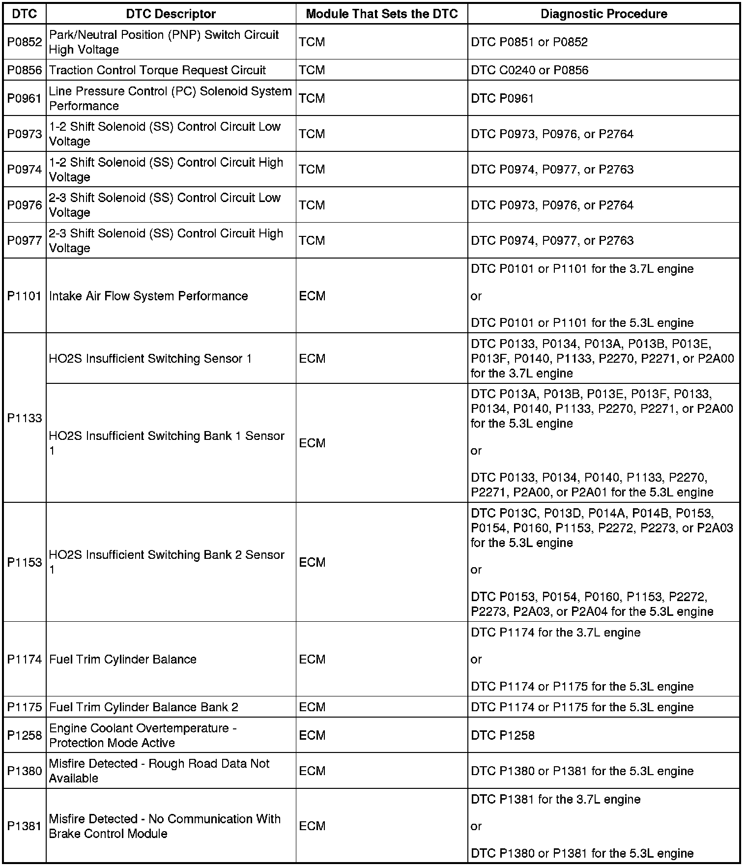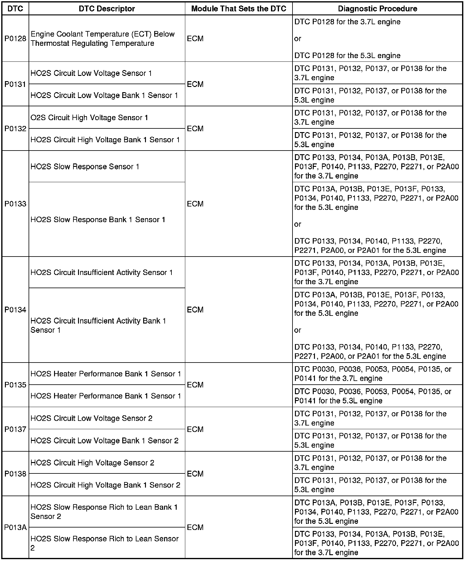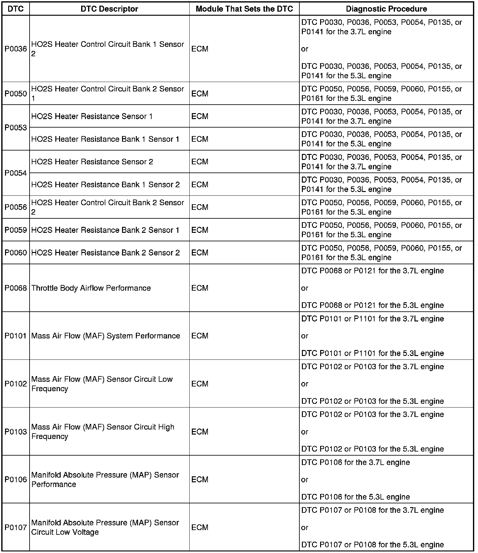 Diagnostic Trouble Code (DTC) List - VehicleP0013 - P0030: