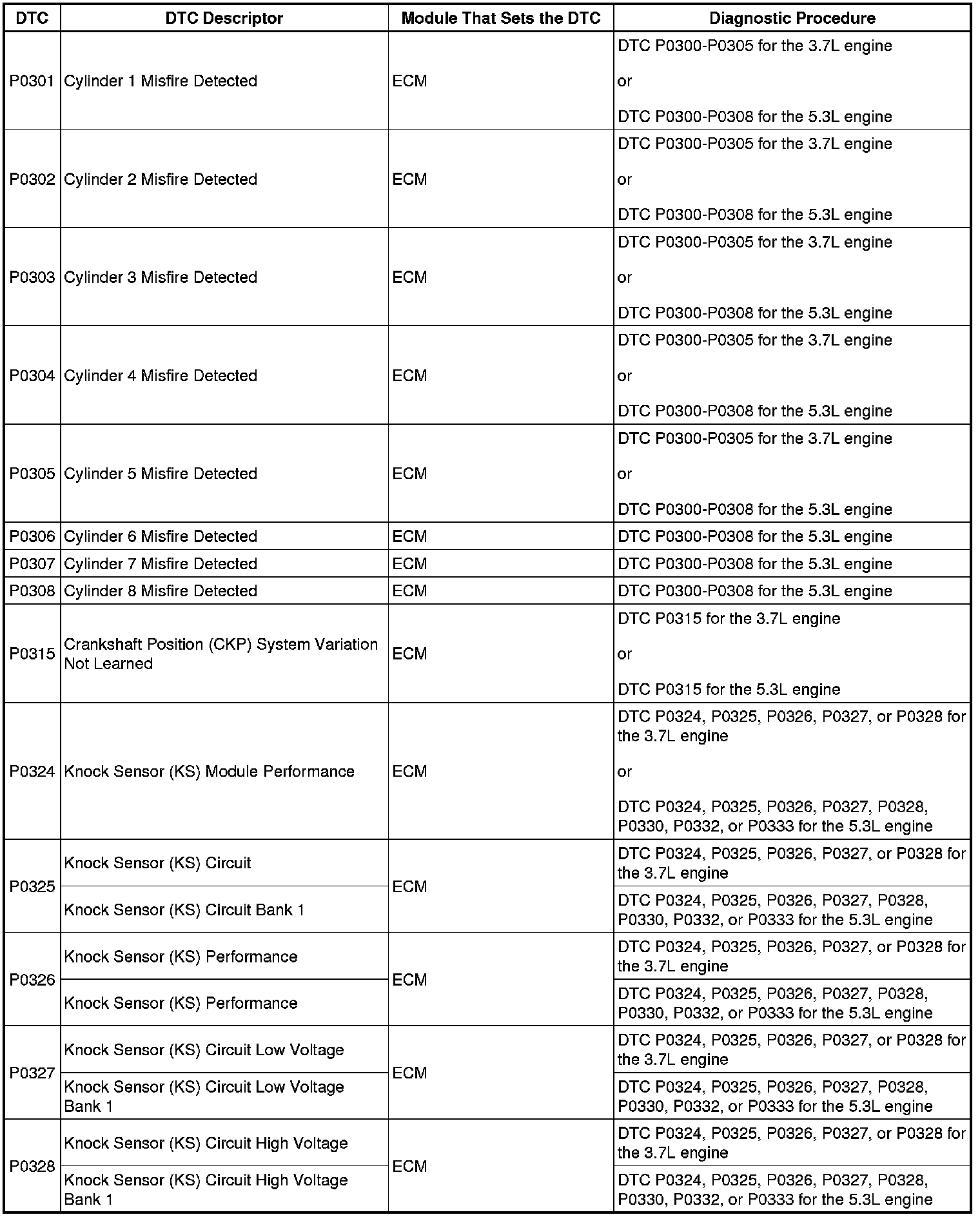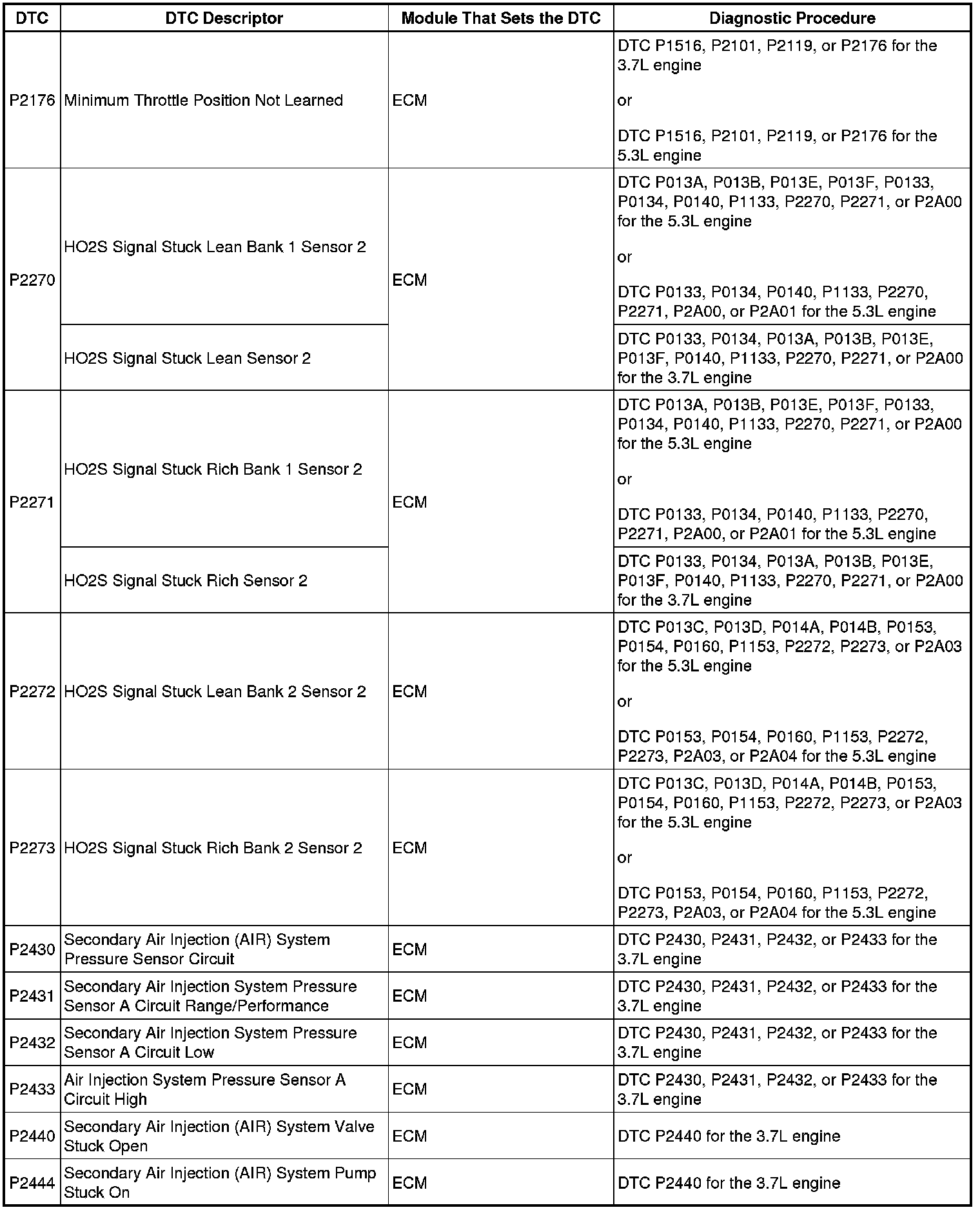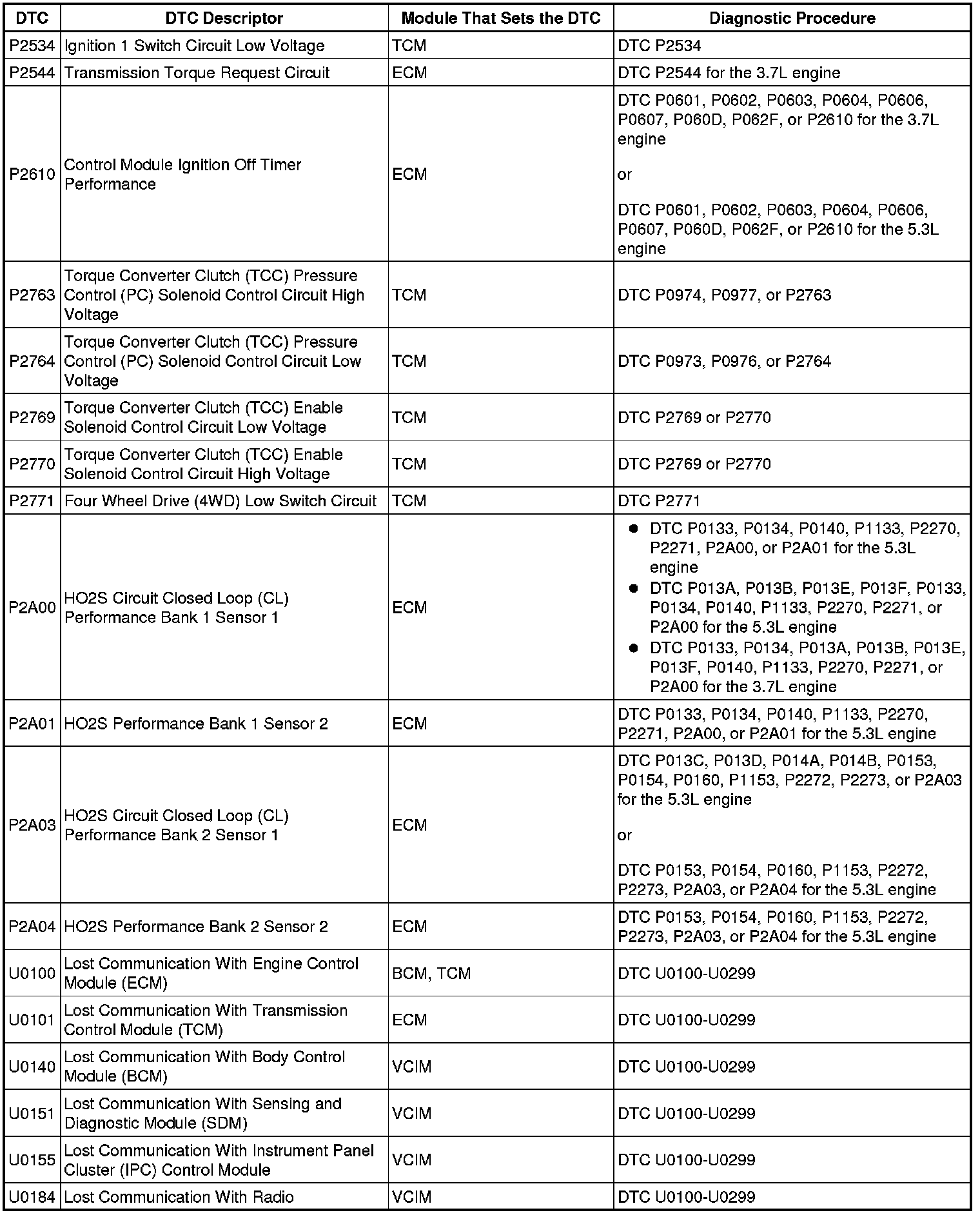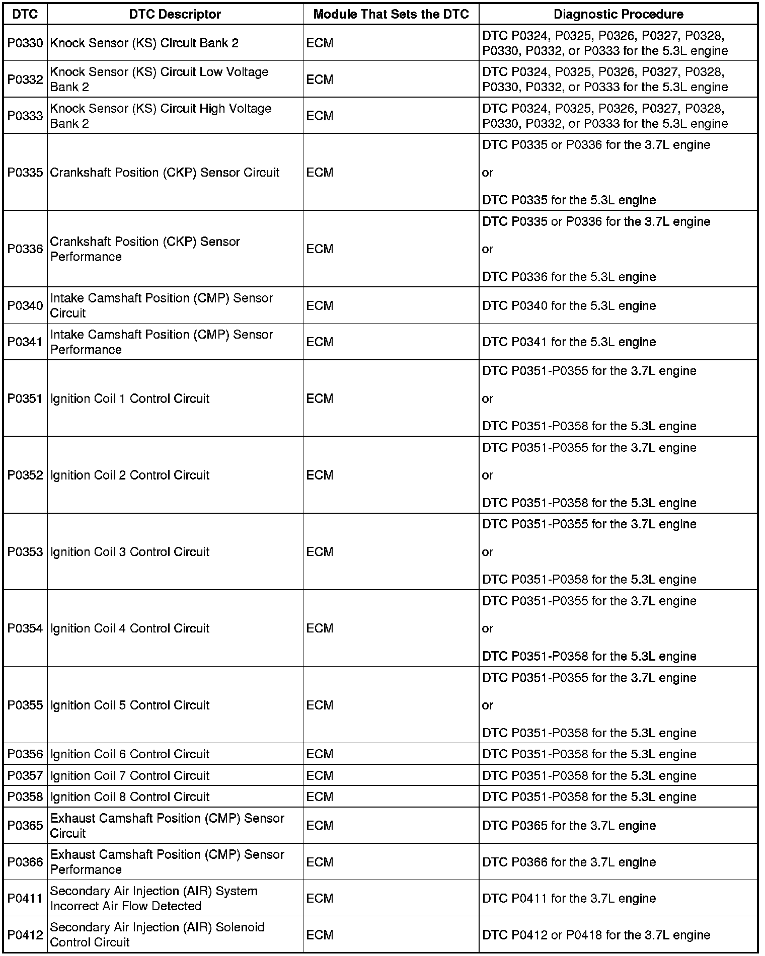 Diagnostic Trouble Code (DTC) List - VehicleP0013 - P0030: