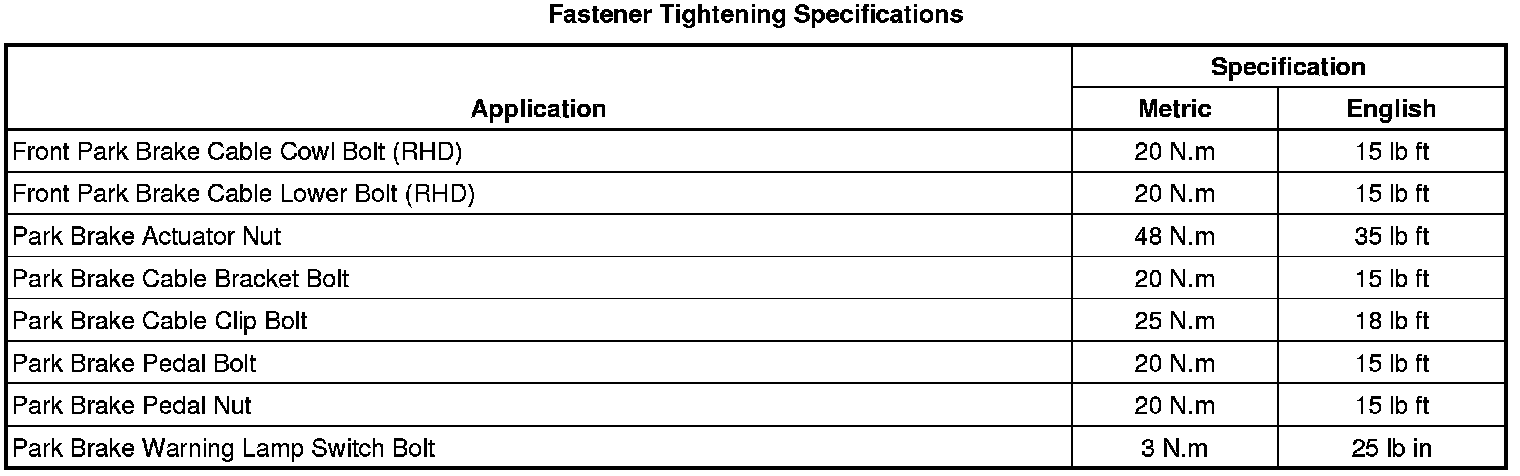 Parking Brake System: Specifications
