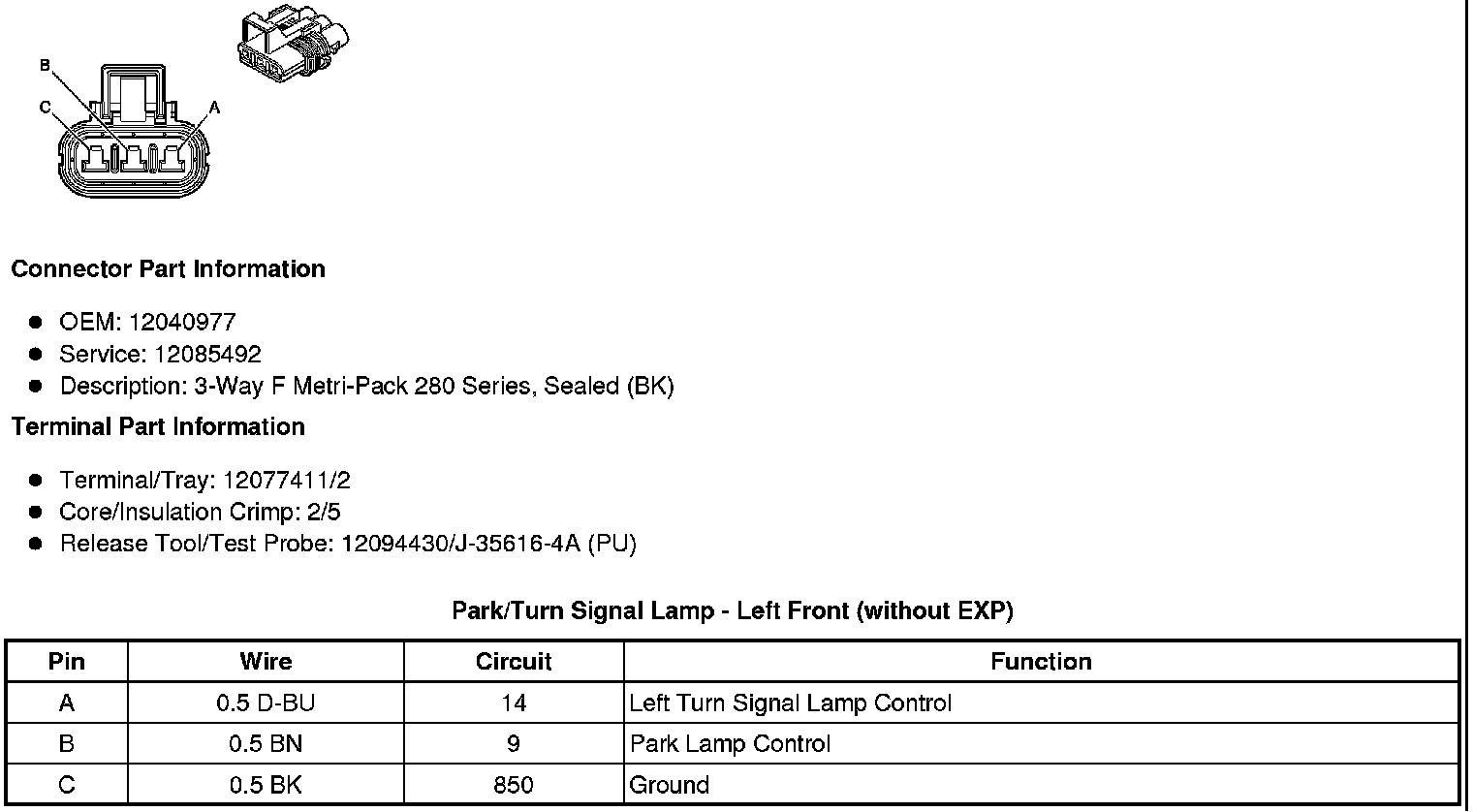 Park/Turn Signal Lamp - Left Front (without EXP)