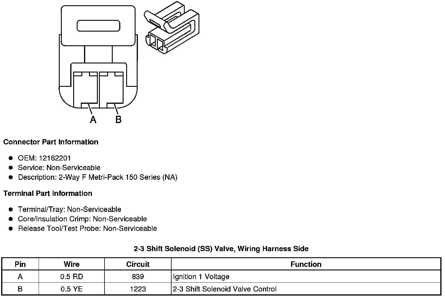 2-3 Shift Solenoid (SS) Valve, Wiring Harness Side