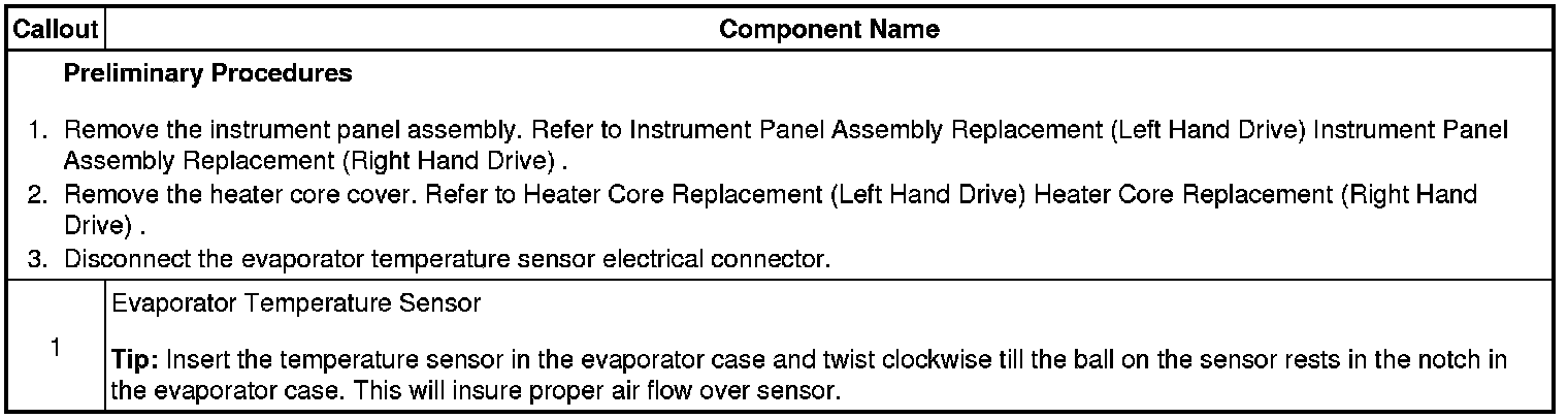 Evaporator Temperature Sensor Replacement (Left Hand Drive)