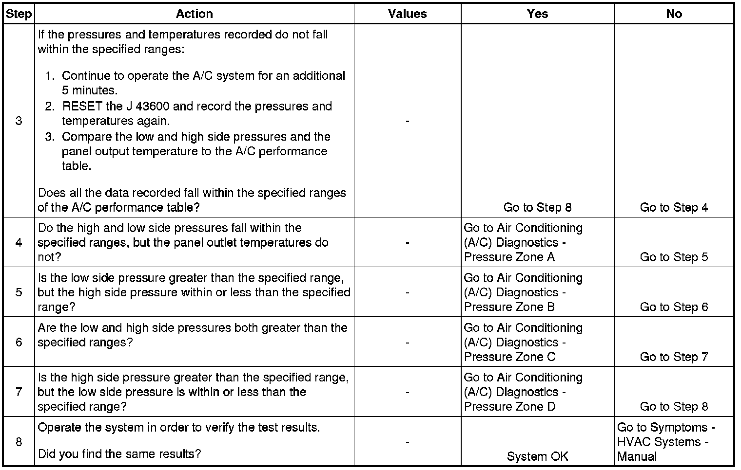 1. This step determines if the A/C system has at least the minimum refrigerant charge required to operate the system without damage.