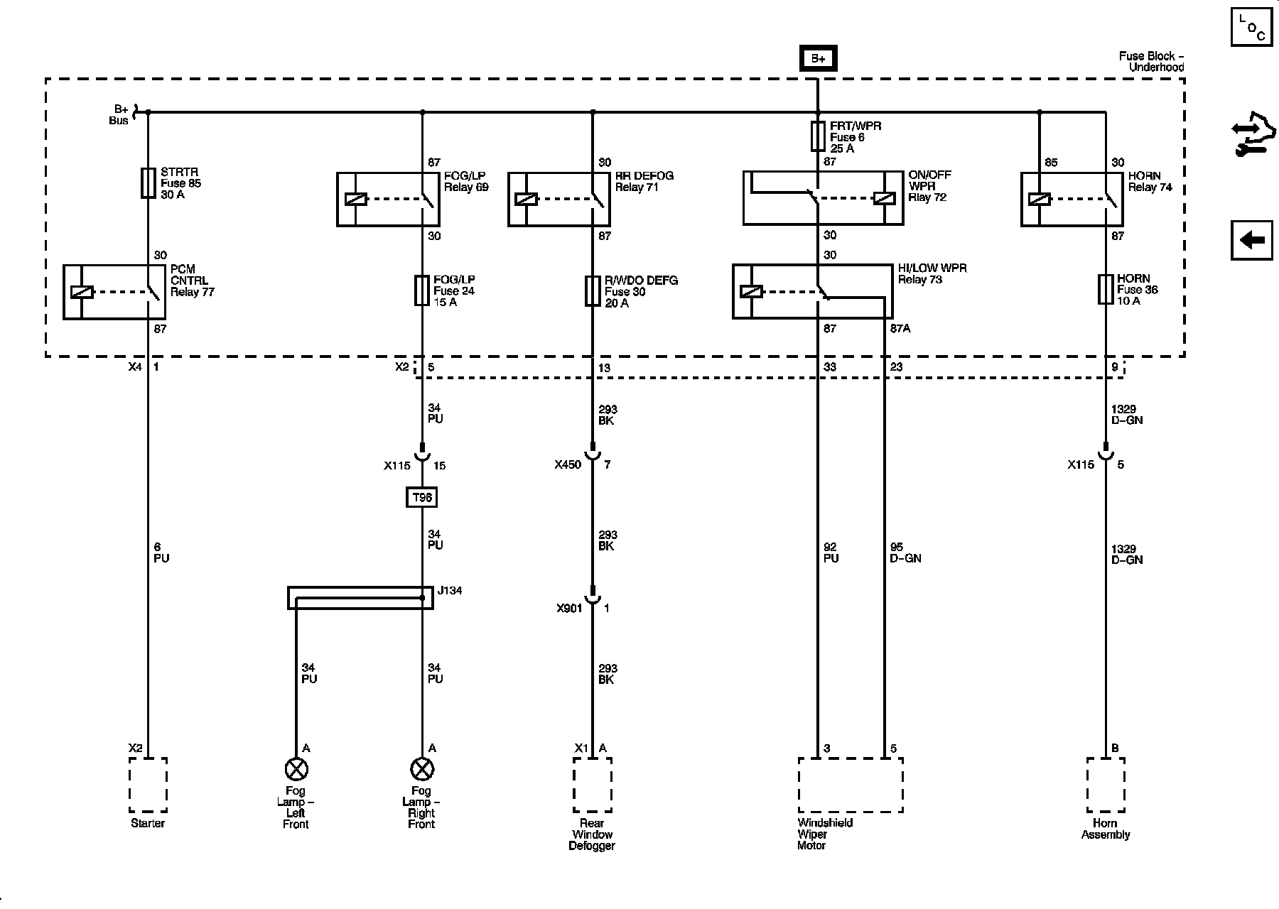 FOG/LP, FRT/WPR, HORN, R/WDO DEFG, and STRTR Fuses
