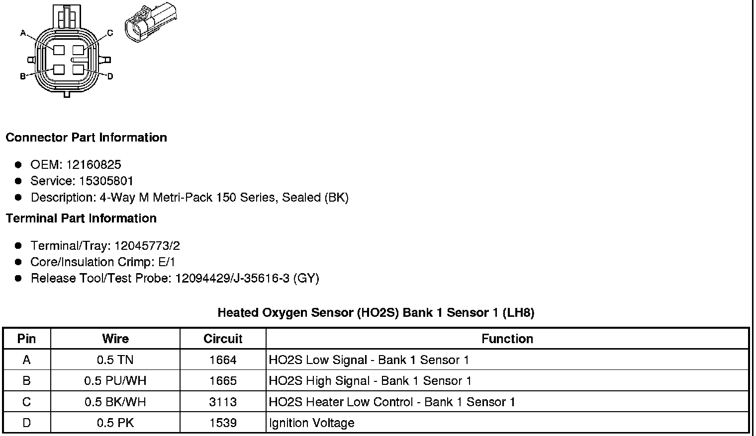 Heated Oxygen Sensor (HO2S) Bank 1 Sensor 1 (LH8)