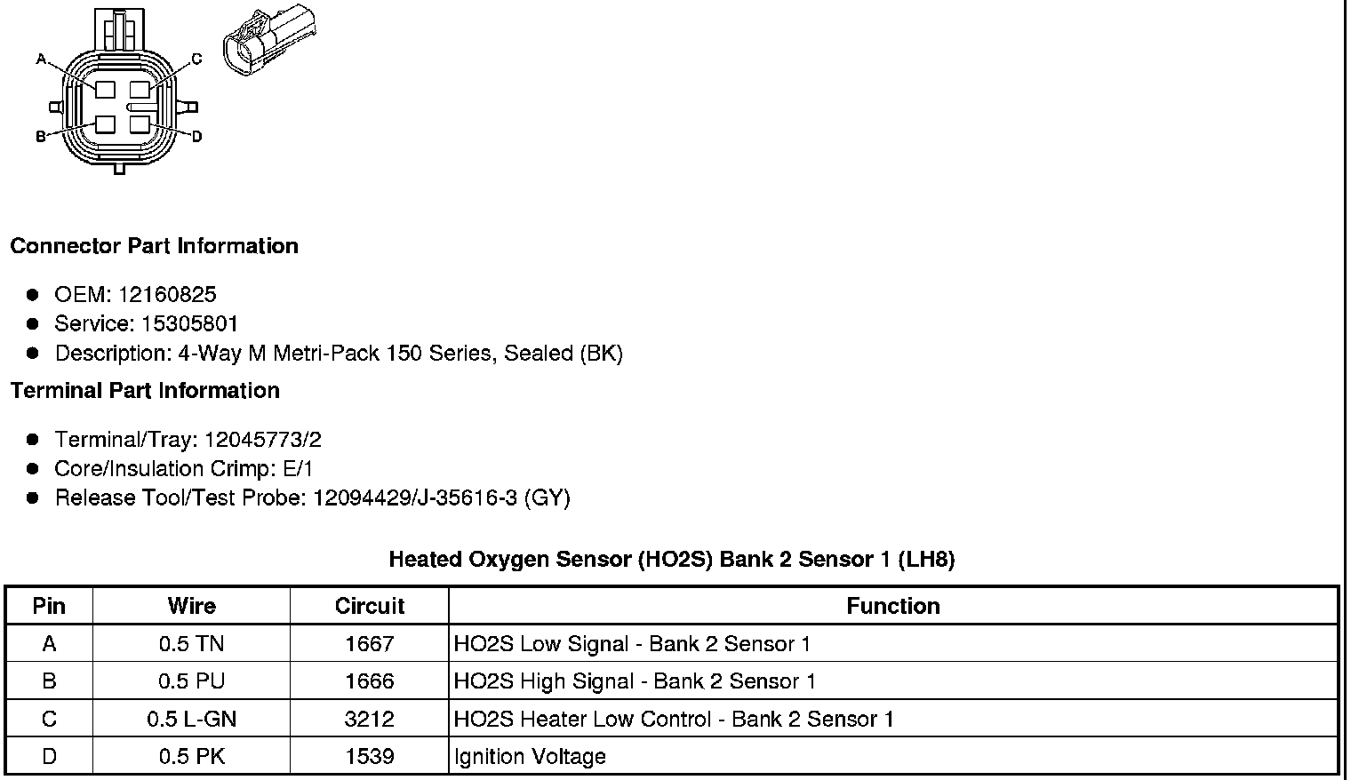 Heated Oxygen Sensor (HO2S) Bank 2 Sensor 1 (LH8)