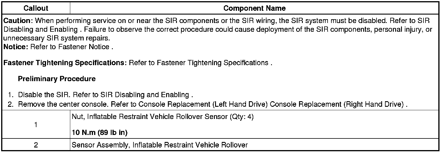 Inflatable Restraint Vehicle Rollover Sensor Replacement