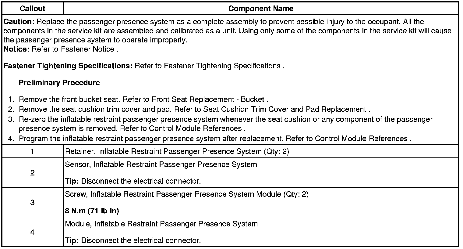 Inflatable Restraint Passenger Presence System Replacement - Front