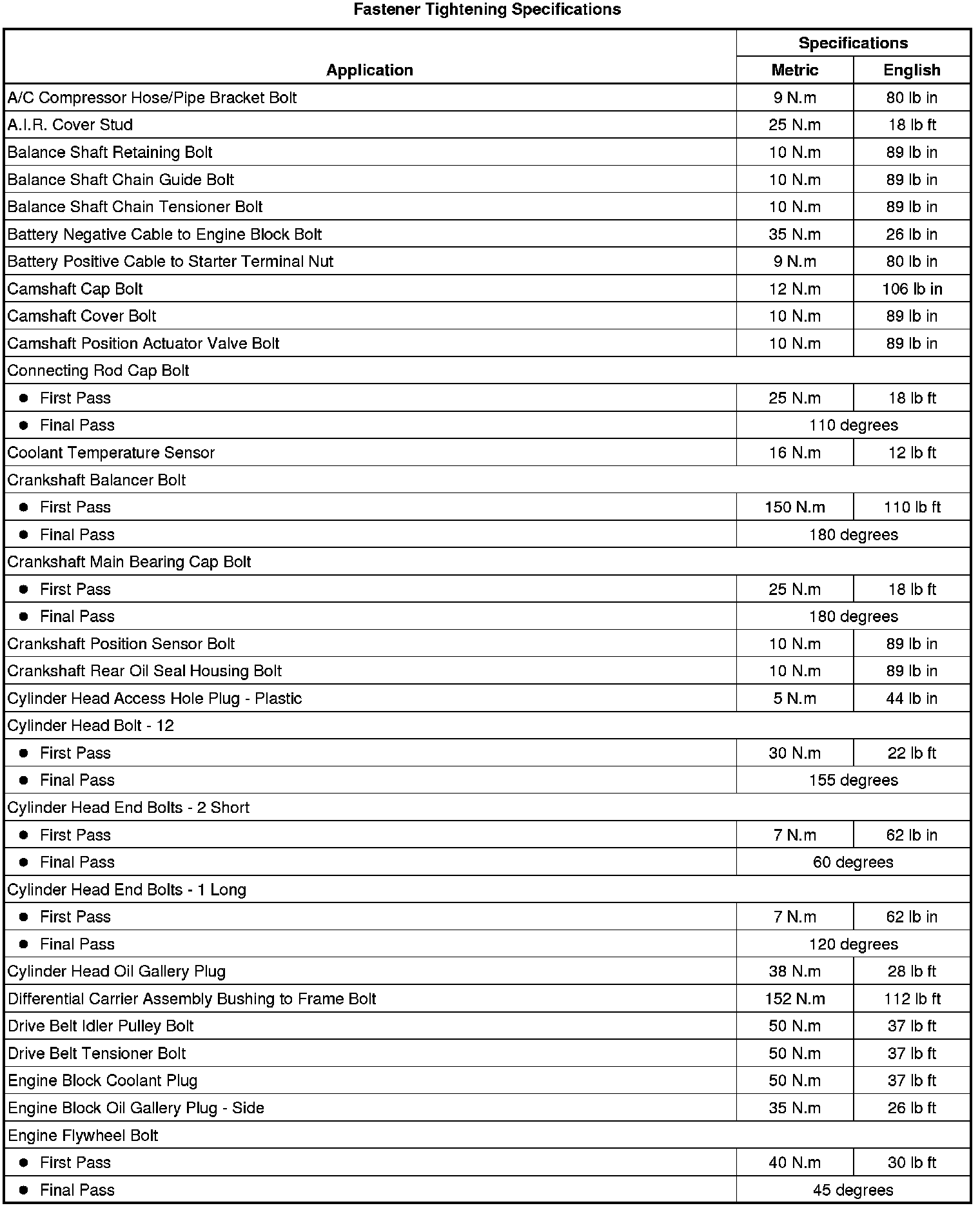 Fastener Tightening Specifications