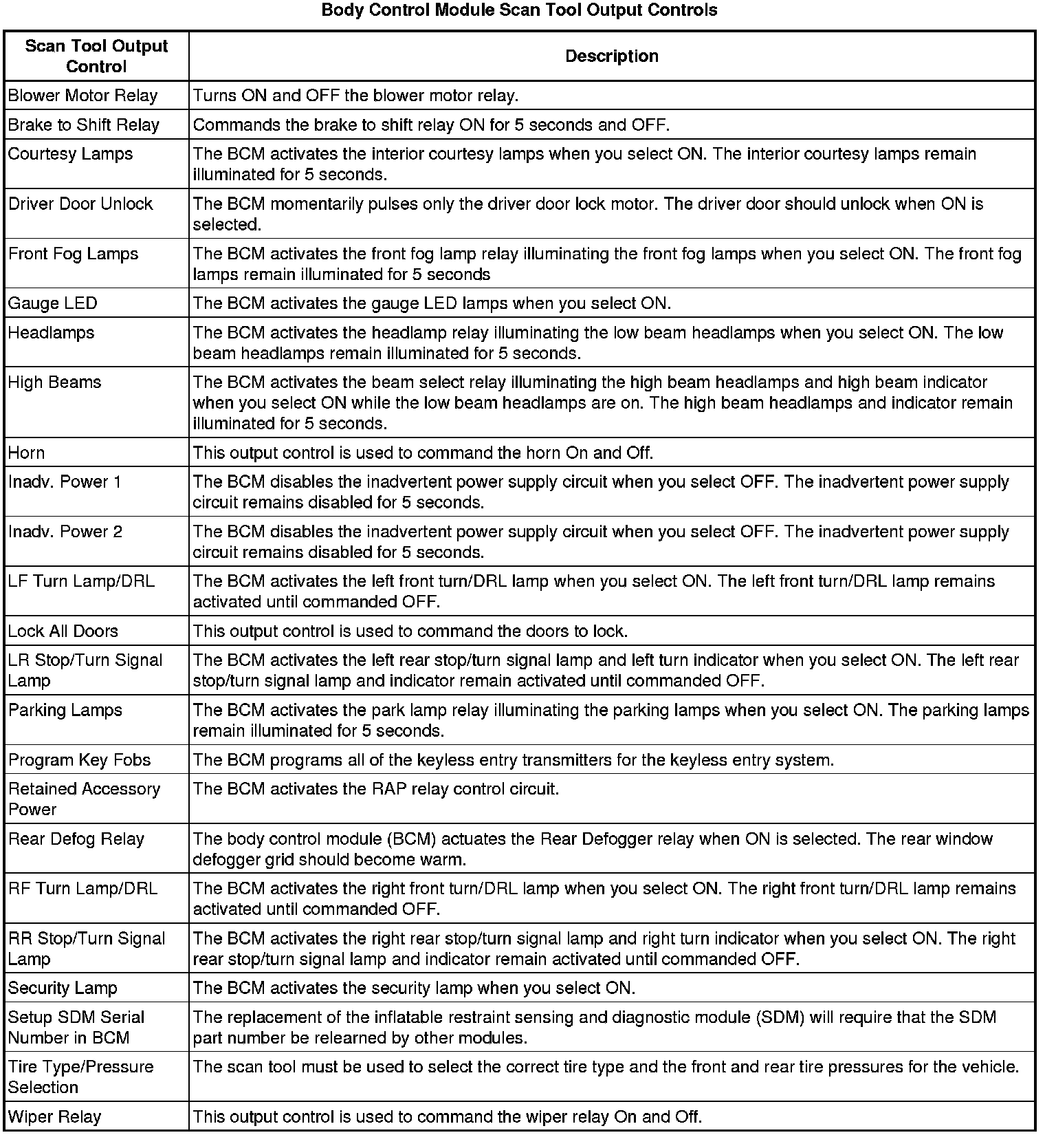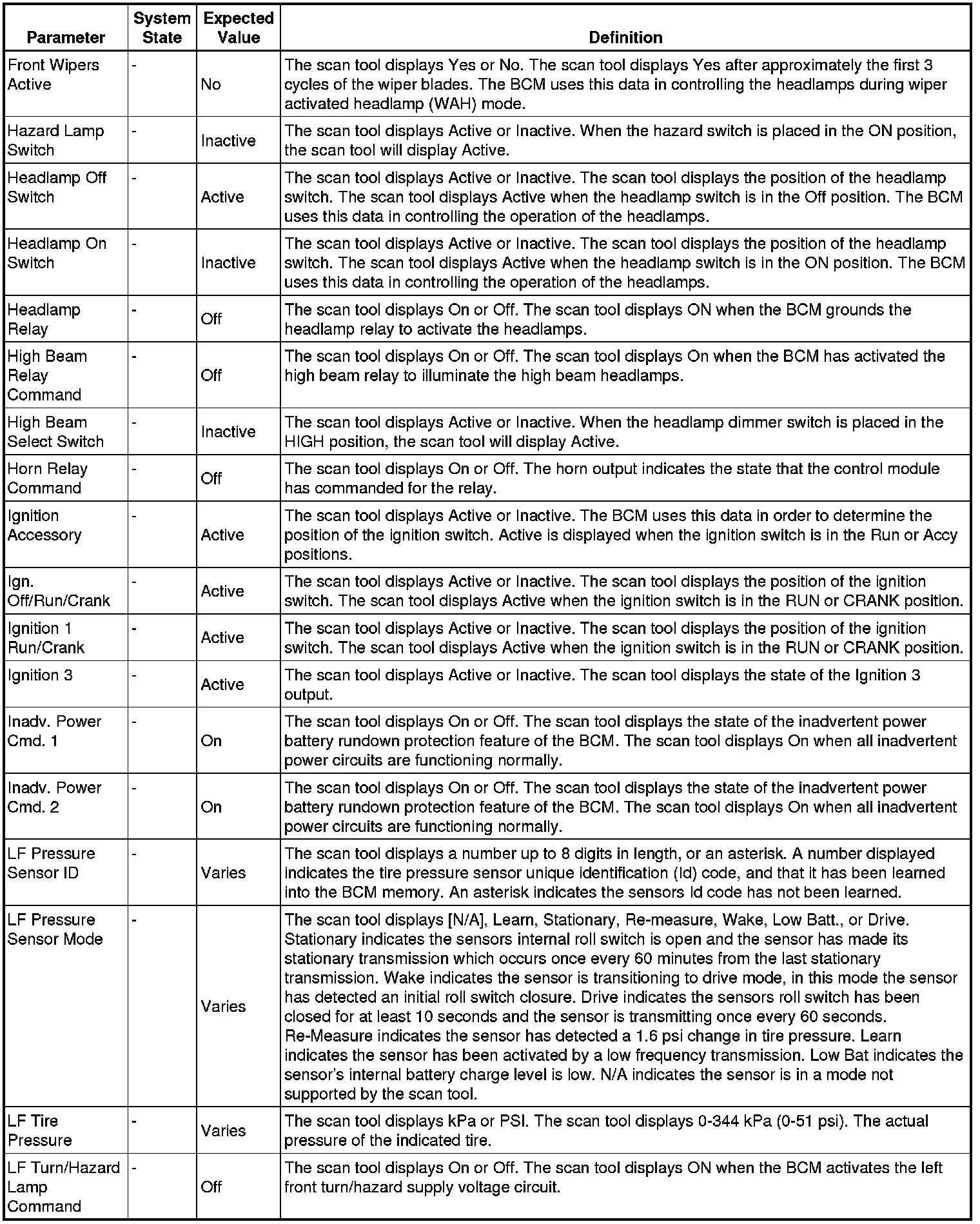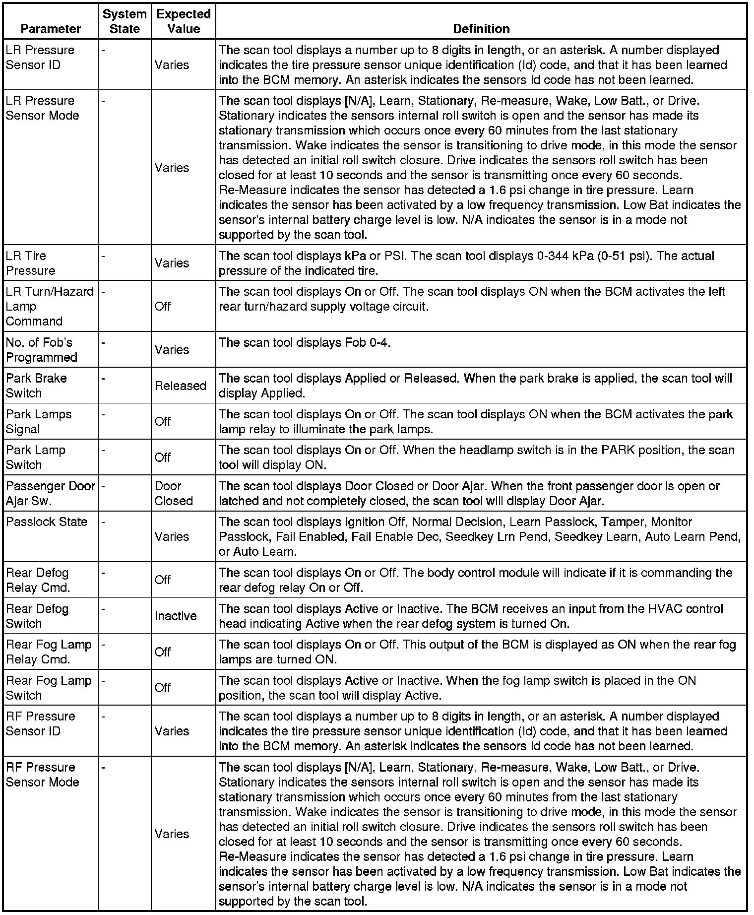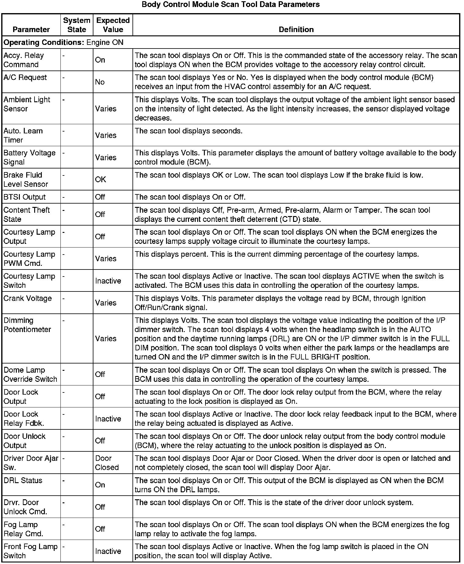 Body Control Module Scan Tool Information