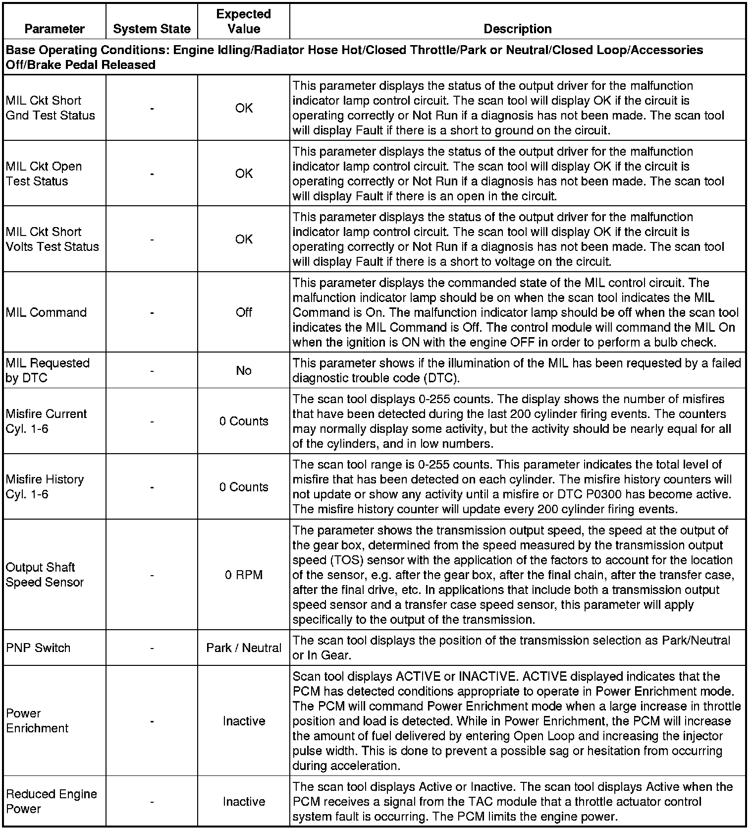 Only the parameters listed below are referenced in this service manual for use in diagnosis. If all values are within the typical range described below, refer to Symptoms - Engine Controls (Symptoms - Engine Controls) for the 3.7L engine for diagnosis.