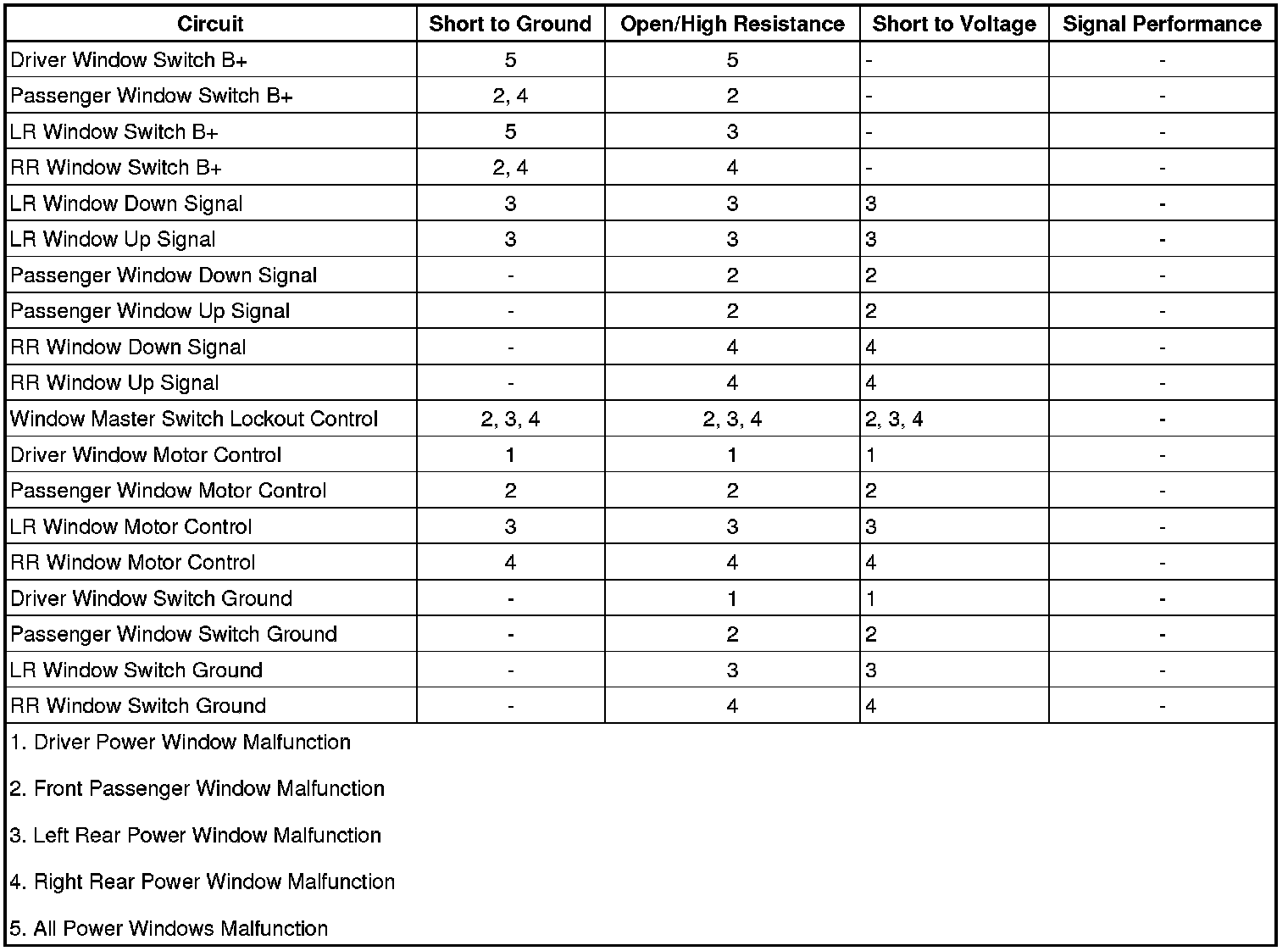 • If the test lamp does not illuminate, test the B+ circuit for a short to ground or an open/high resistance. If the circuit tests normal, replace the driver window switch.