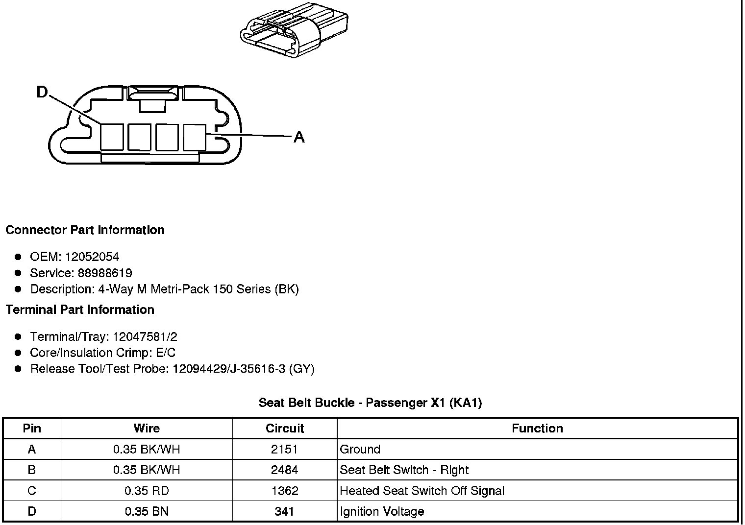 Seat Belt Buckle - Passenger X1 (without KA1)