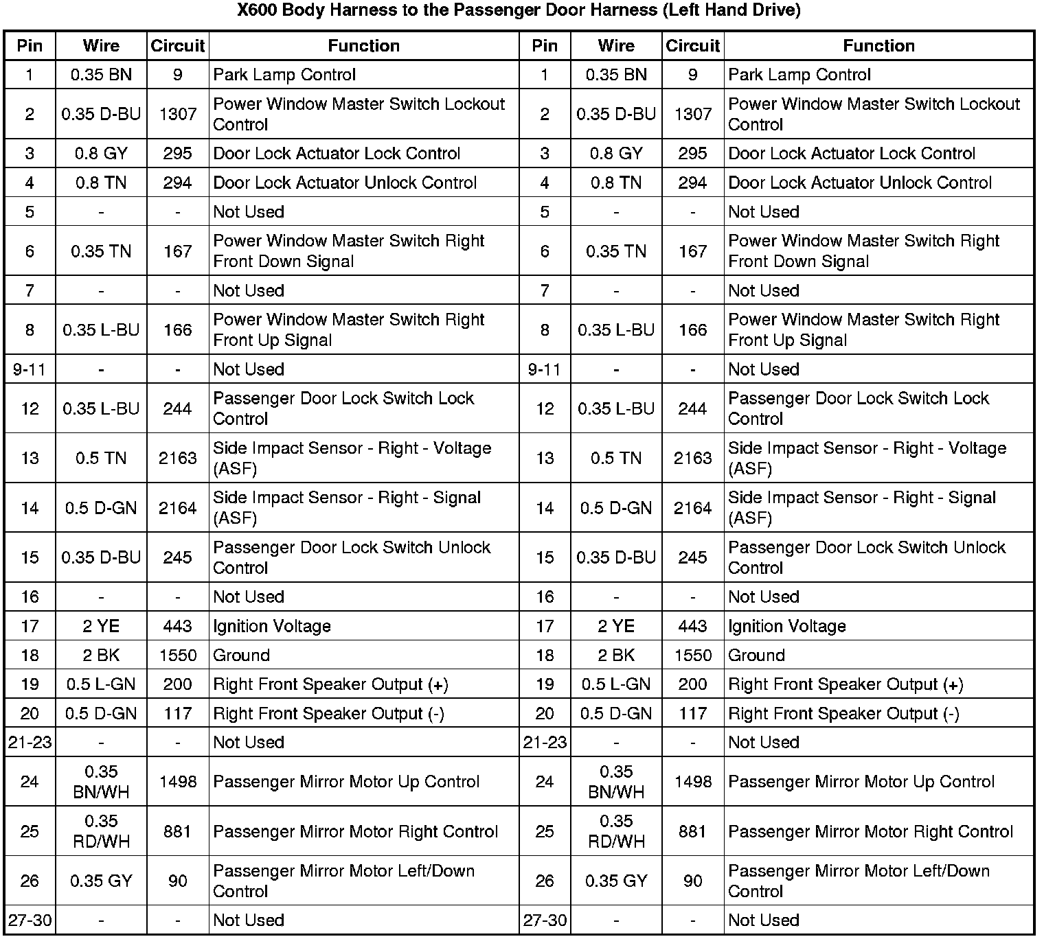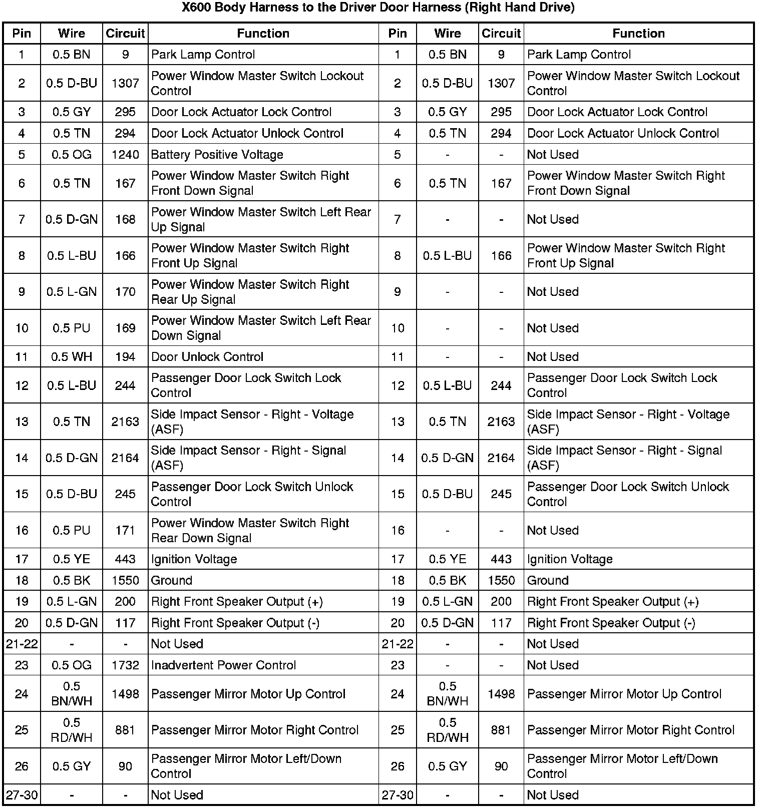 X600 Body Harness to the Driver Door Harness (Right Hand Drive)