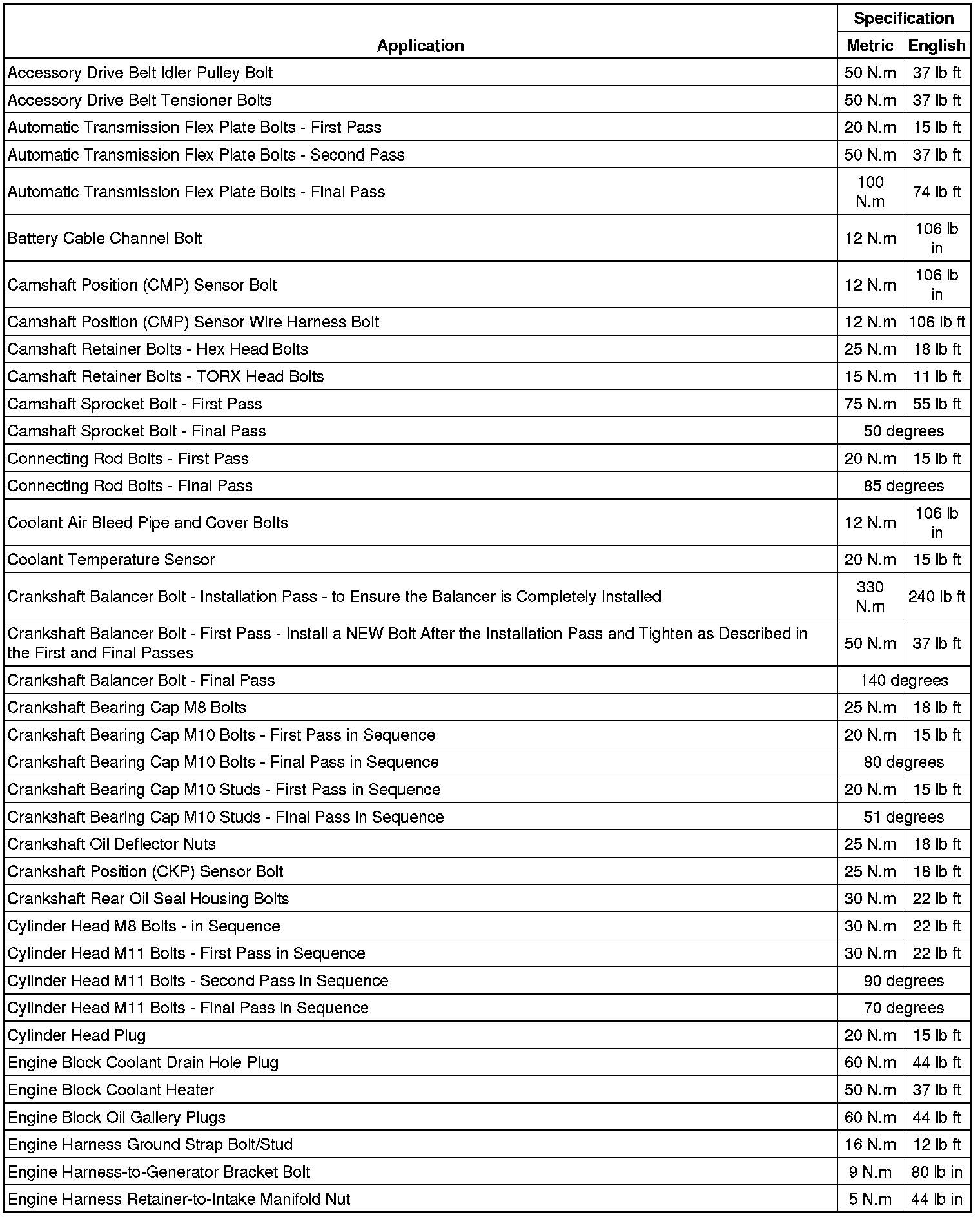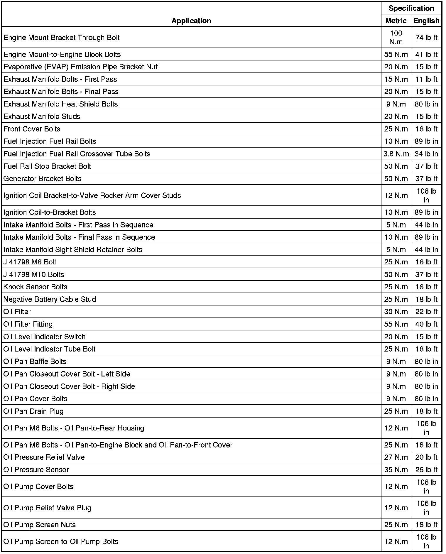 Fastener Tightening Specifications