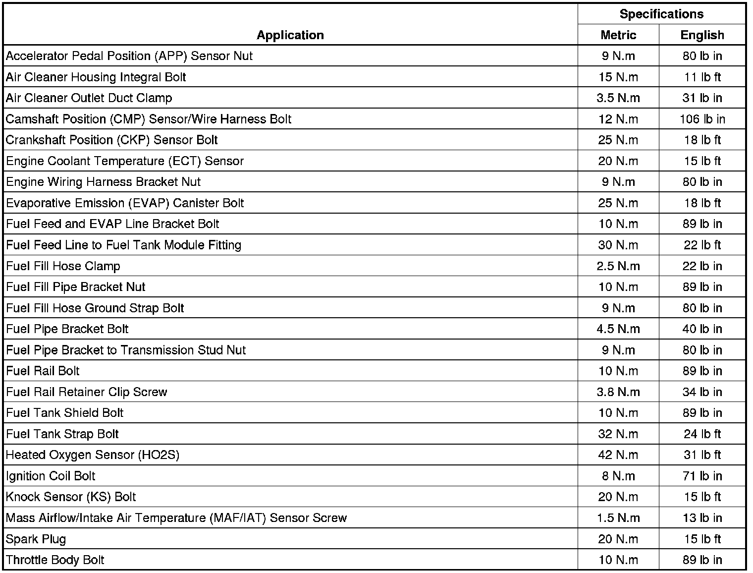Fastener Tightening Specifications