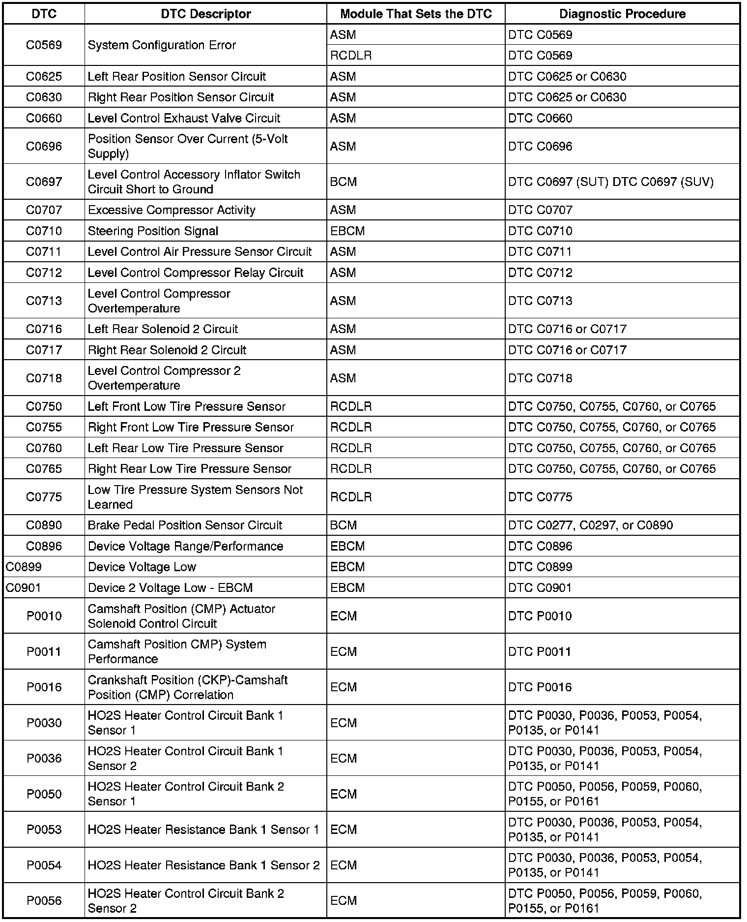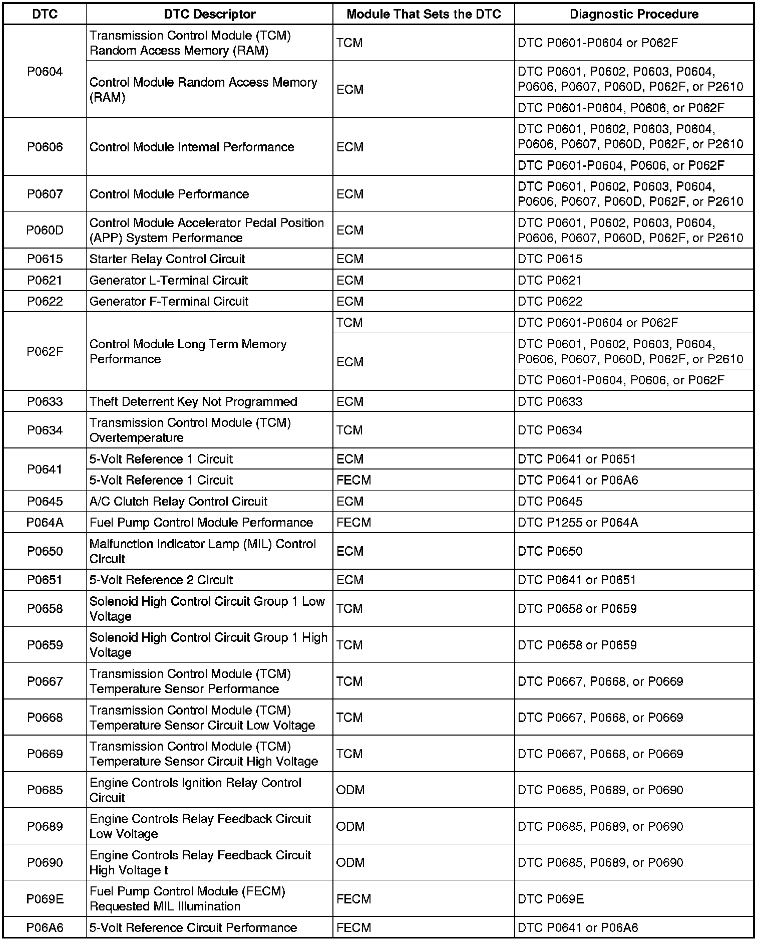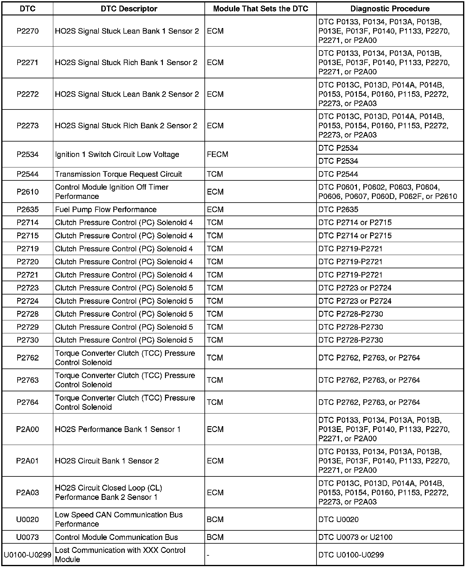 Diagnostic Trouble Code (DTC) List - VehicleThis master DTC list includes all applicable DTC's in alphanumeric order with descriptors.