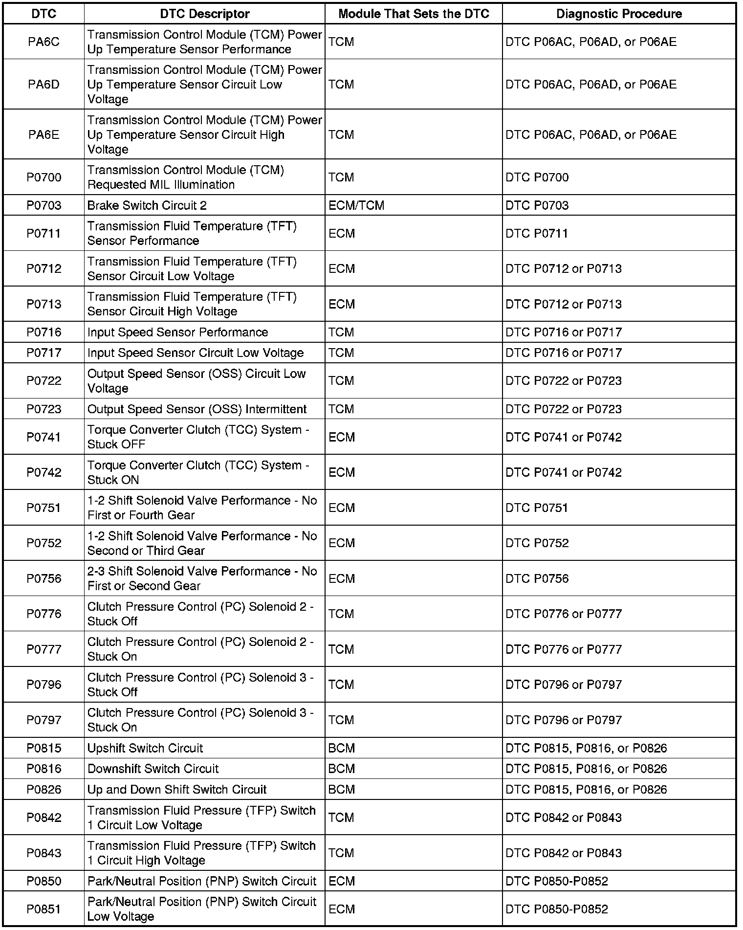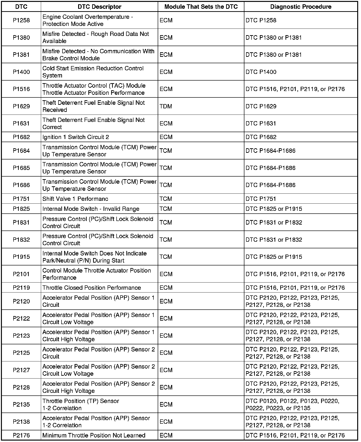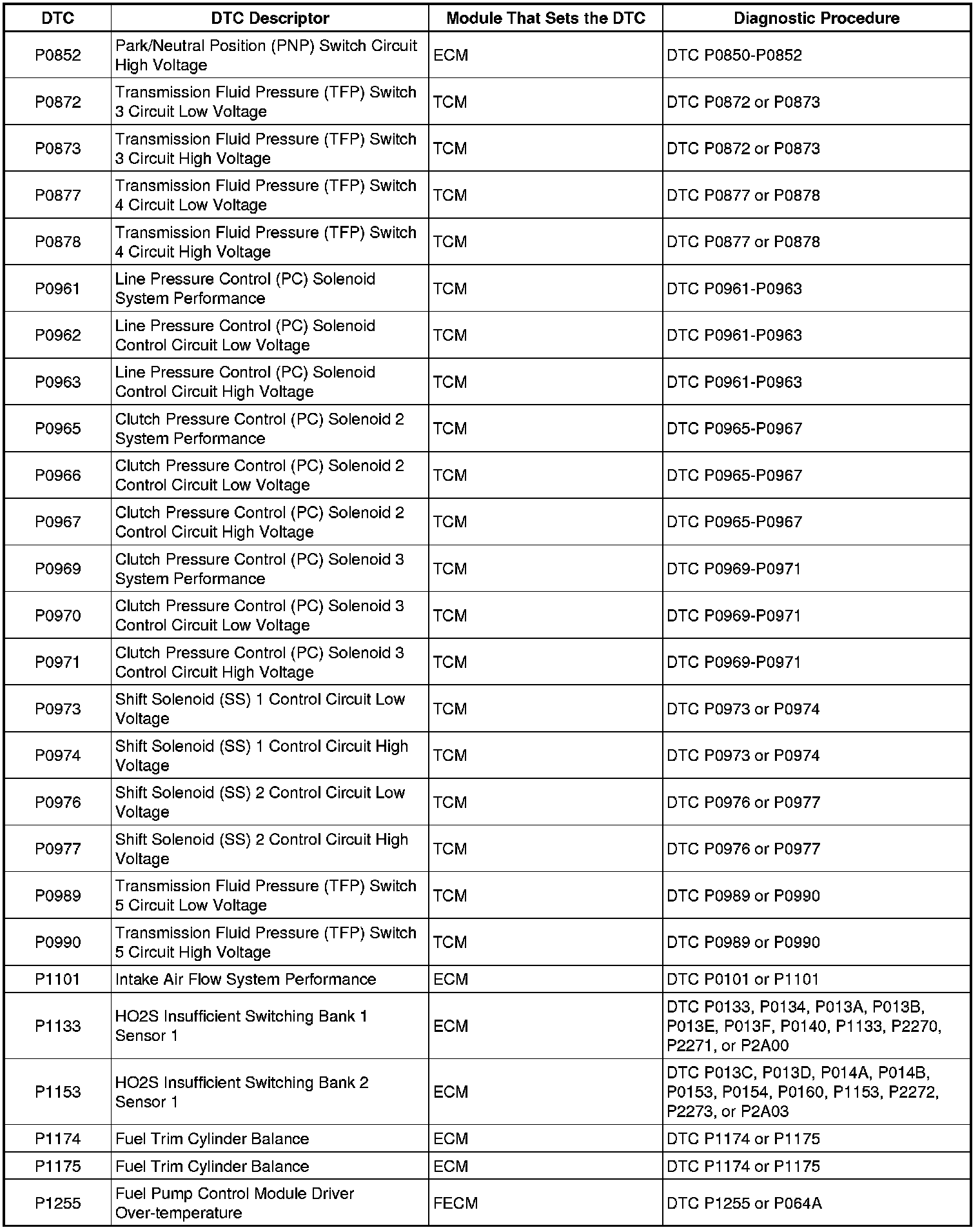 Diagnostic Trouble Code (DTC) List - VehicleThis master DTC list includes all applicable DTC's in alphanumeric order with descriptors.