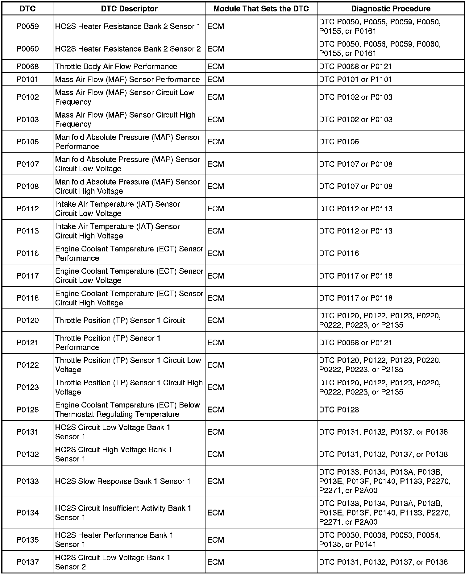 P0059 - P0137: