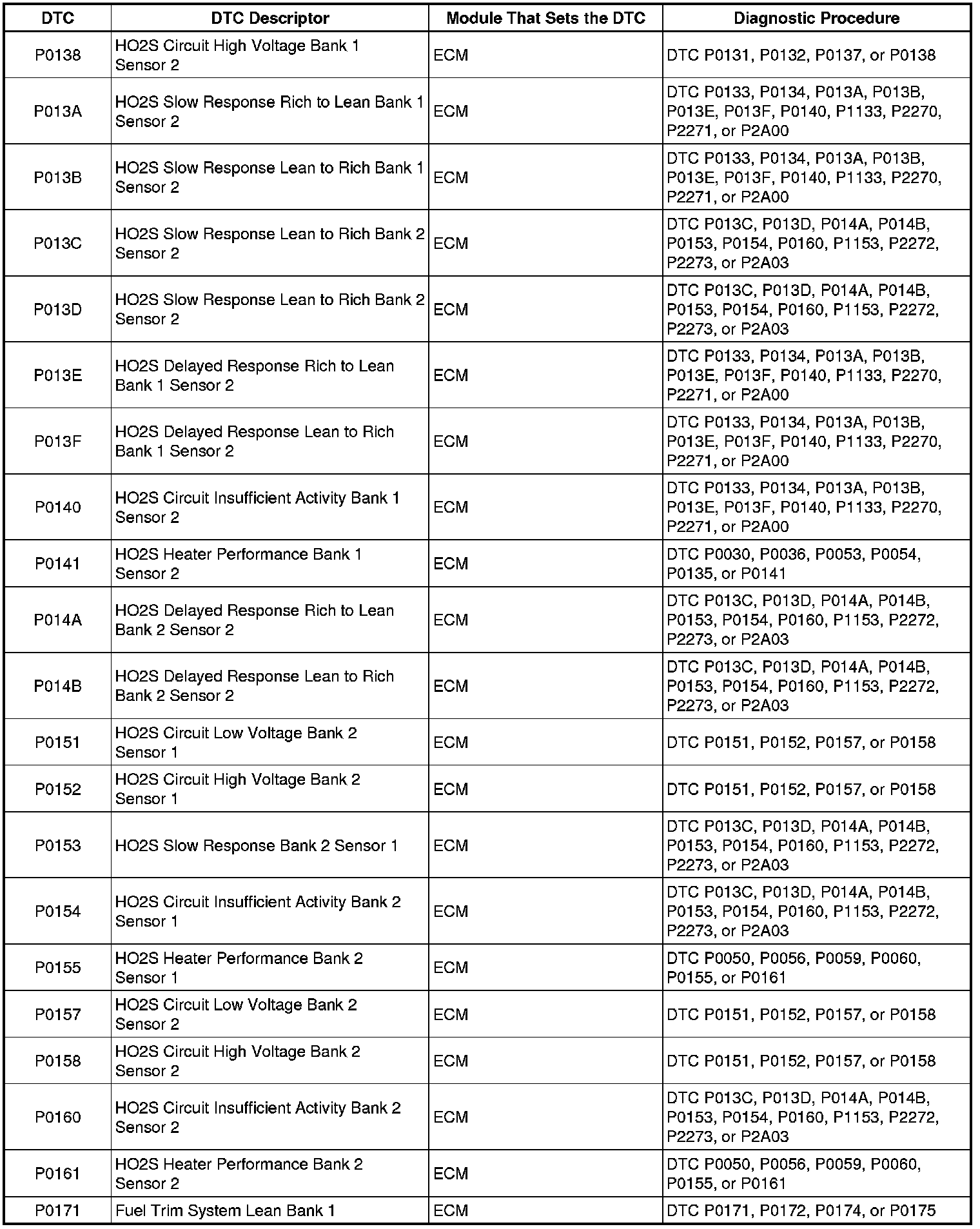 P0138 - P0171: