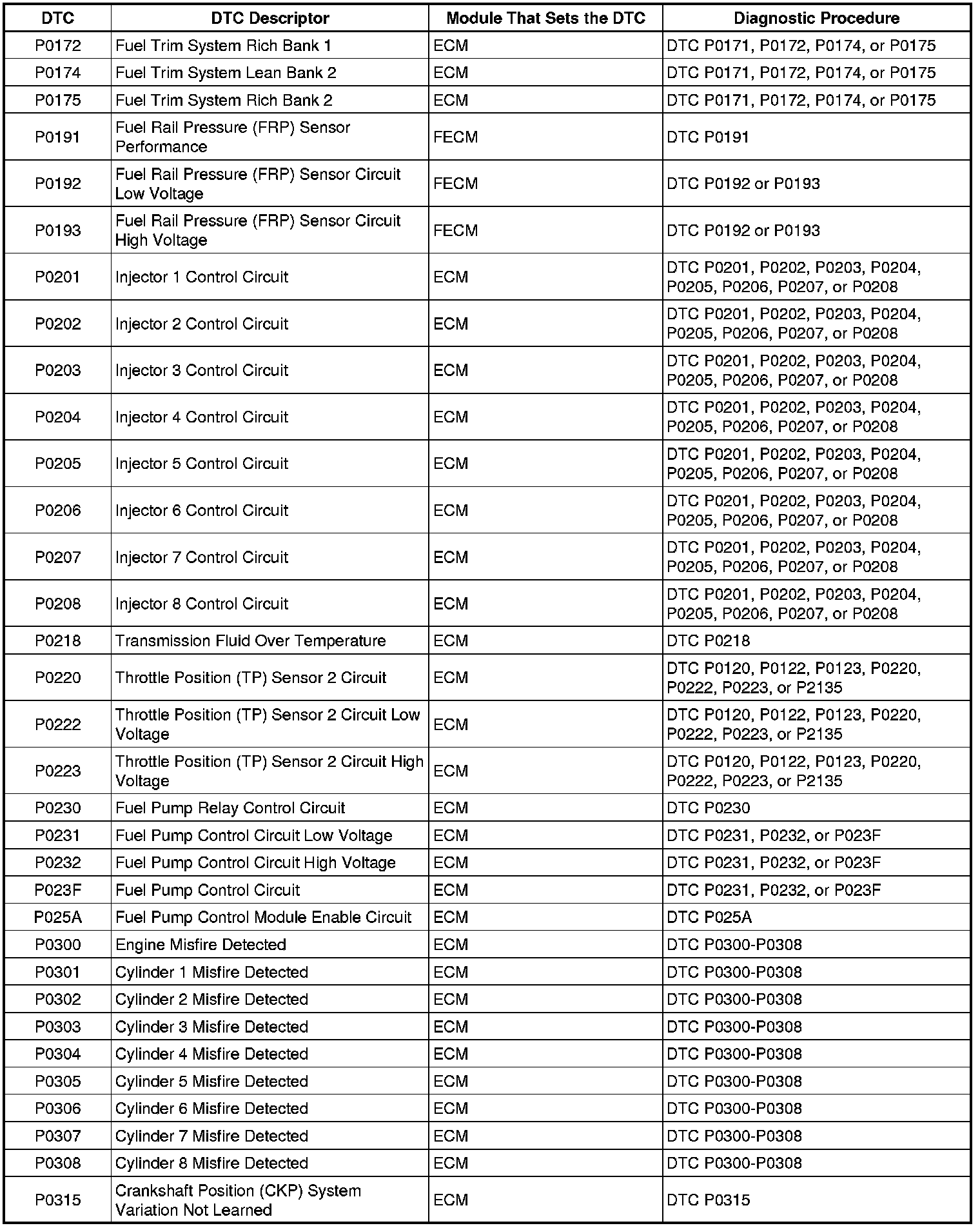 P0172 - P0315: