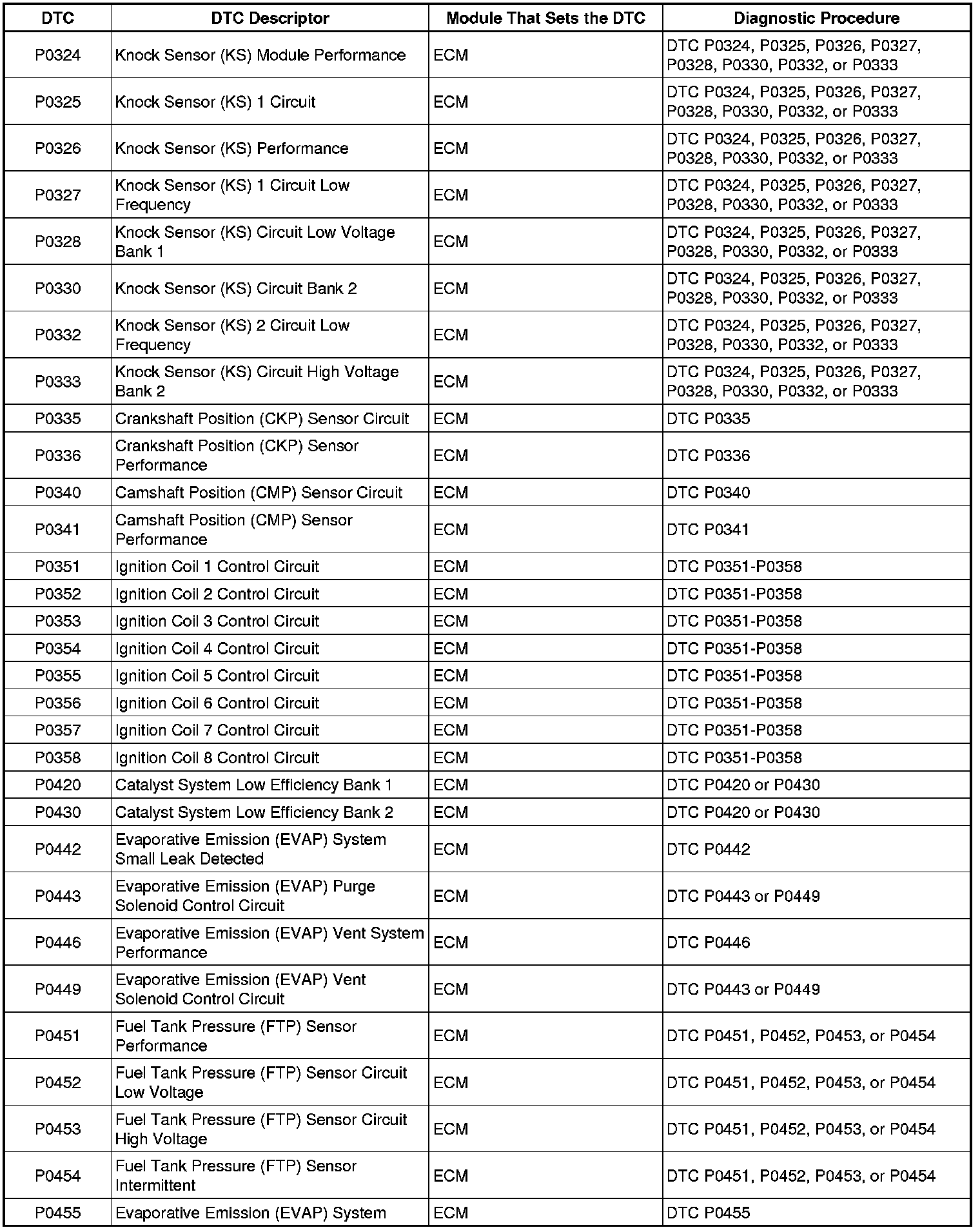 P0324 - P0455: