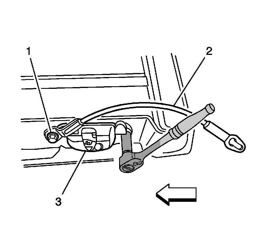 2. Ensure the shouldered bolt (1) is used on the latch cable assembly end.