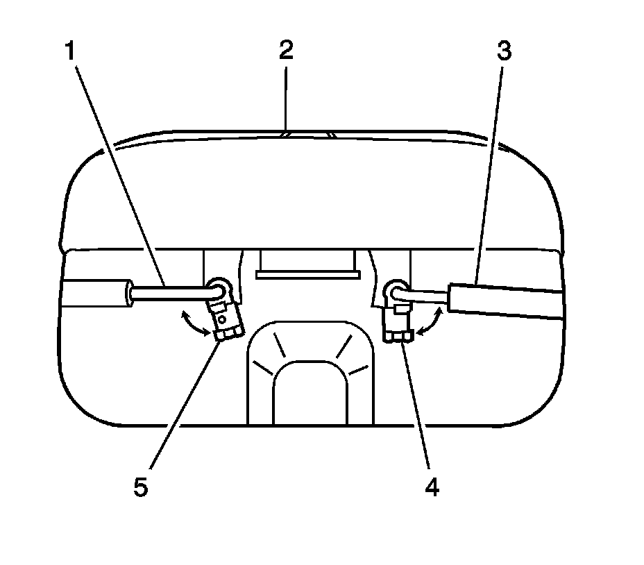 4. Release the 2 lock rod retaining clips (4, 5) from the lock rods (1, 3).