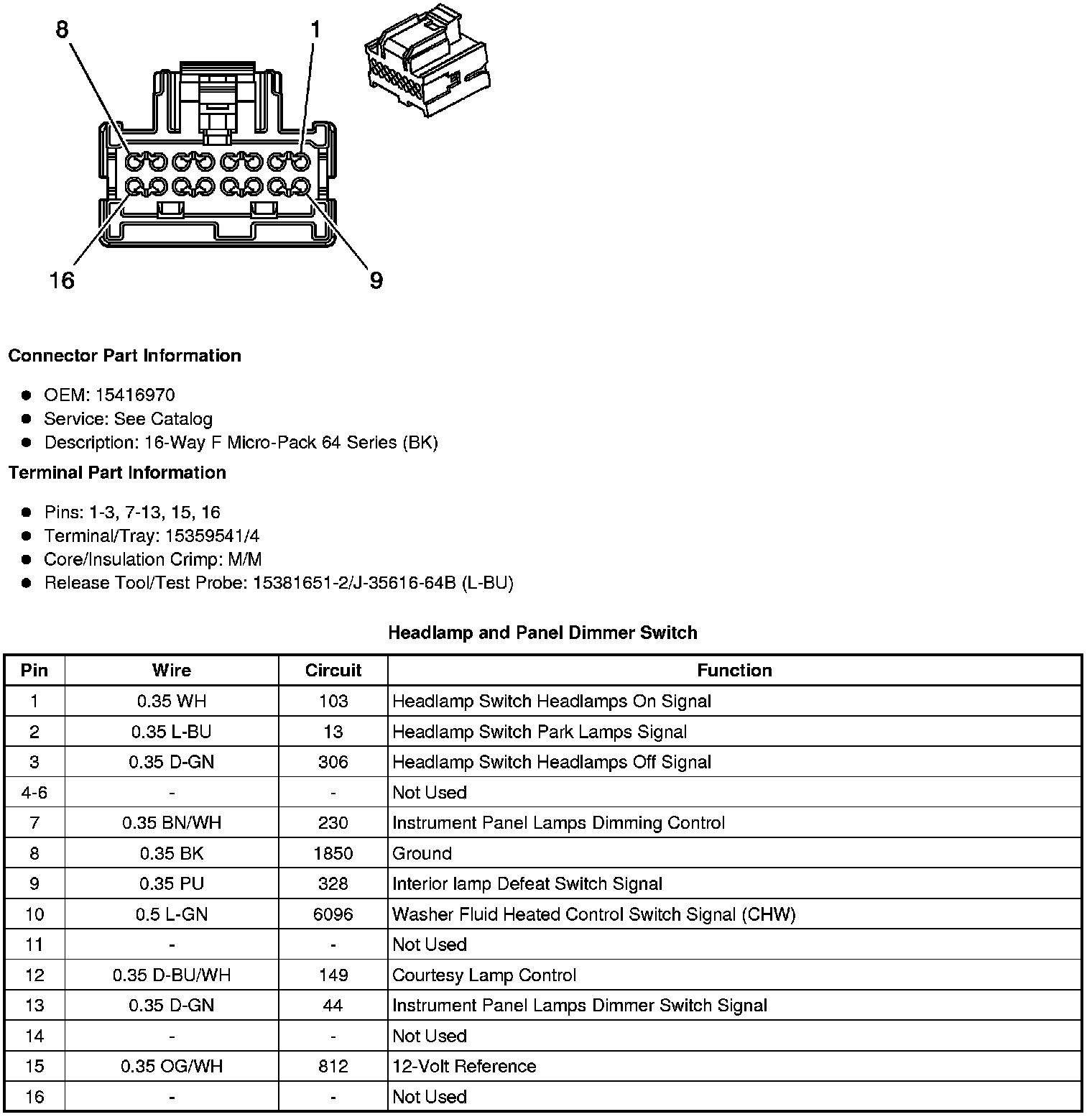 Headlamp and Panel Dimmer Switch