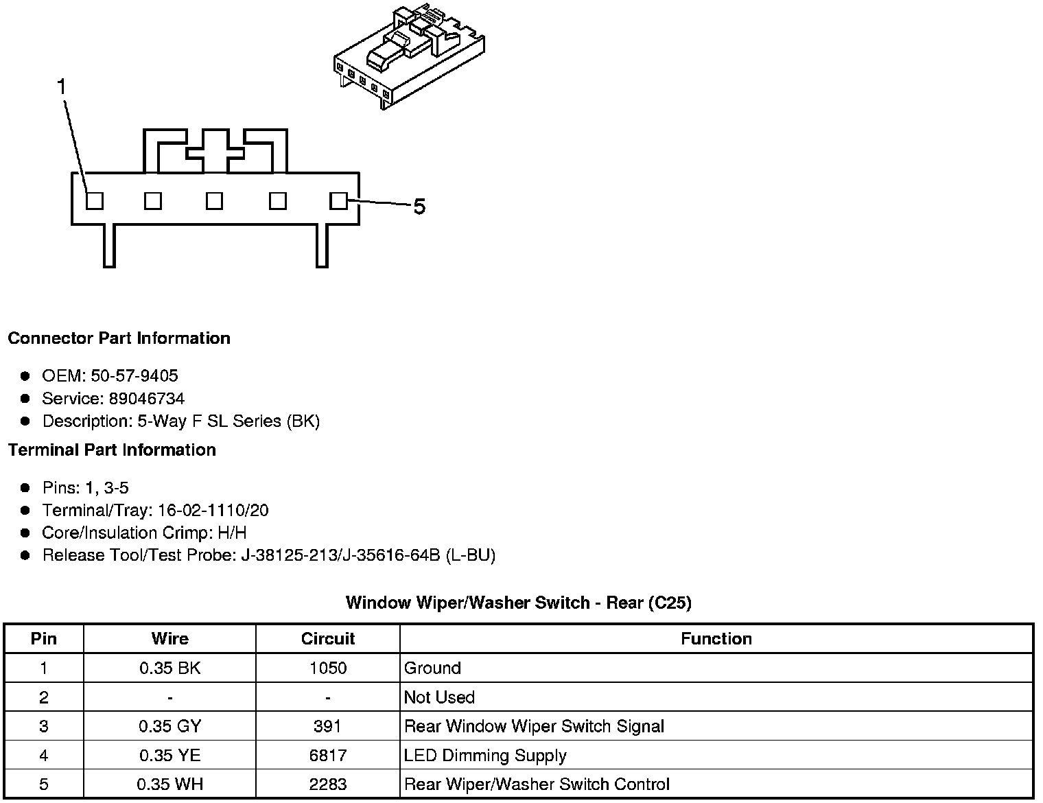 Window Wiper/Washer Switch - Rear (C25)