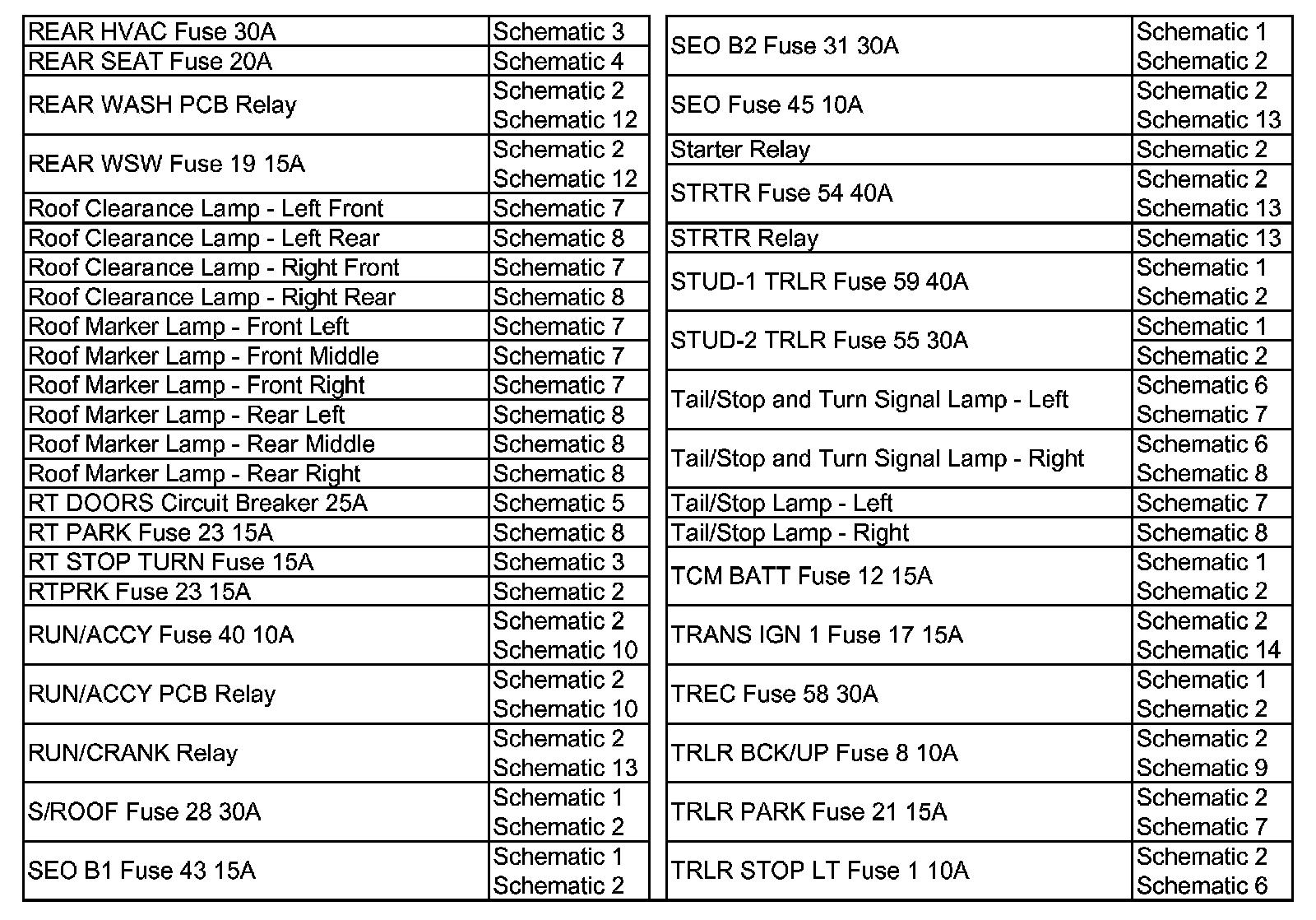 Rear HVAC Fuse 30 A-TRLR Stop LT Fuse 1 10A: