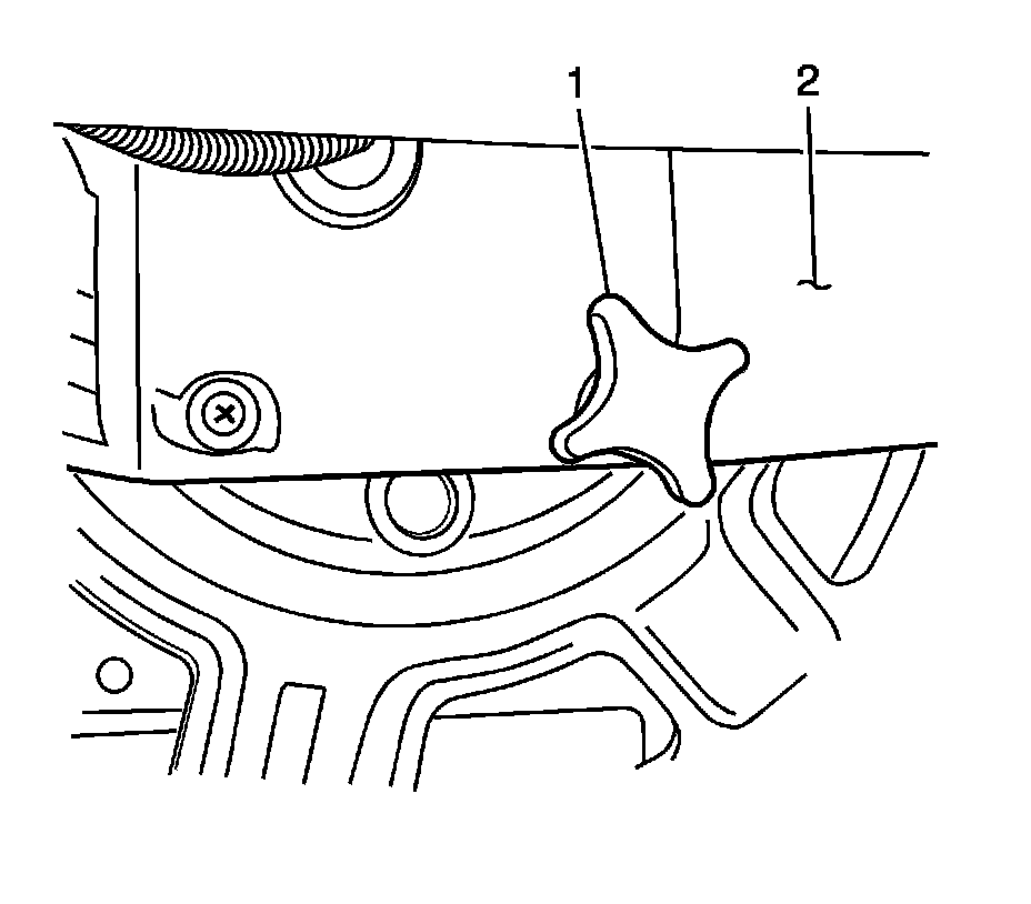 2. Remove the hand nut (1) securing the license plate spare wheel cover to the spare tire carrier frame (2).