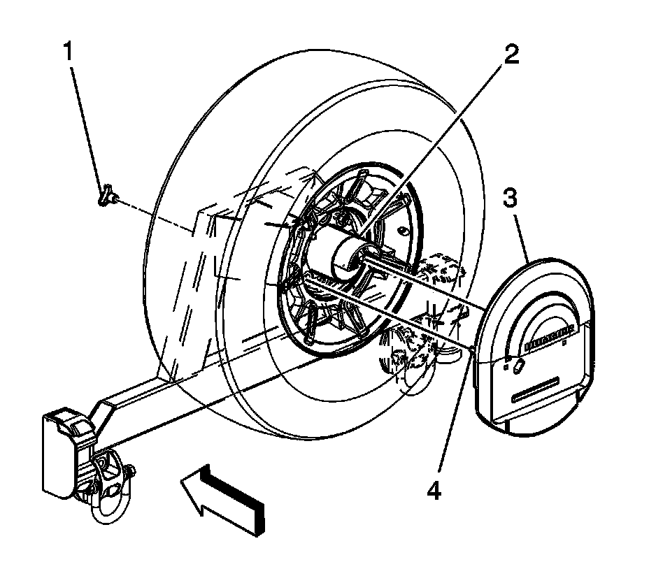 3. Remove the license plate spare wheel cover (3) from the tire carrier frame (2).