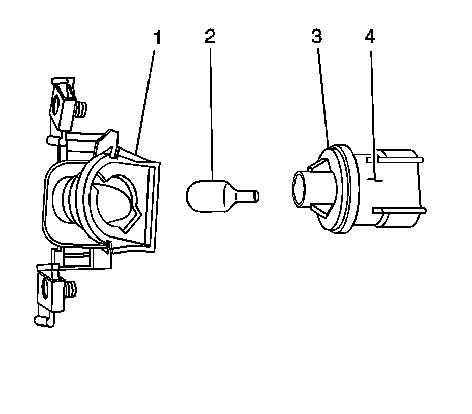 4. Remove the 2 screws (1) securing the license plate lamp (2) to the spare tire carrier frame.