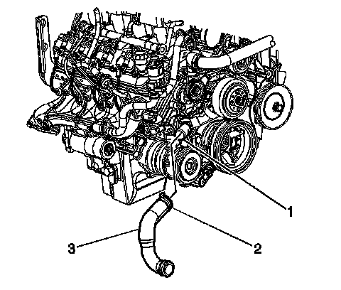 4. Remove the radiator outlet hose (3) from the engine (1).