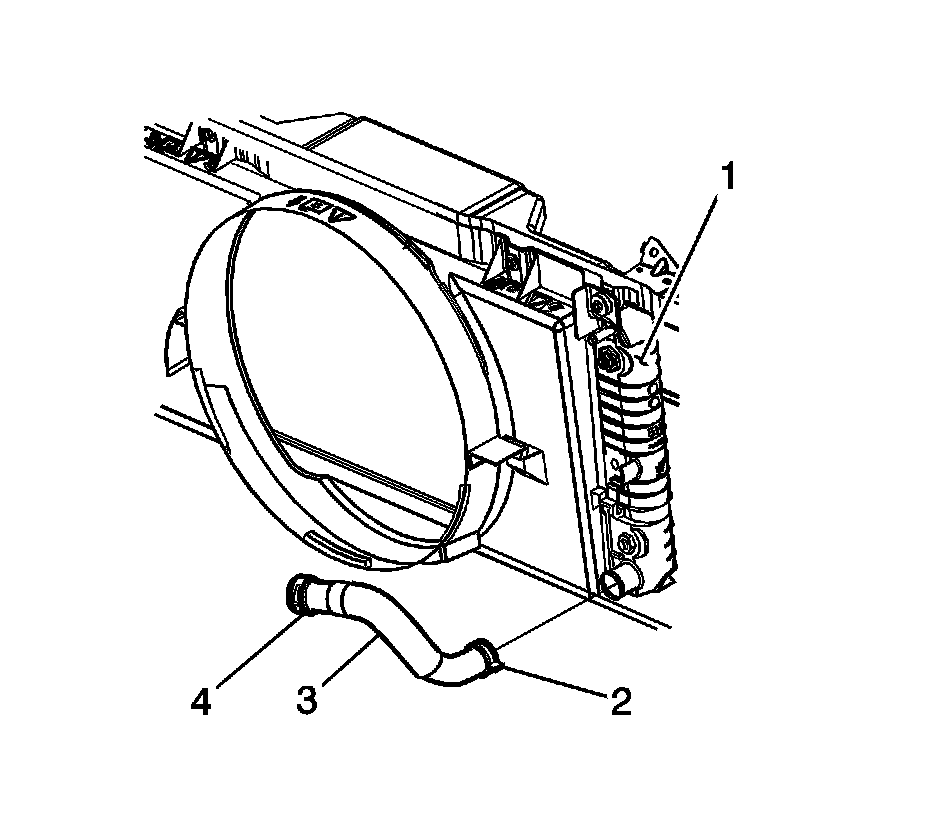 1. Install the radiator outlet hose (3) to the radiator (1).