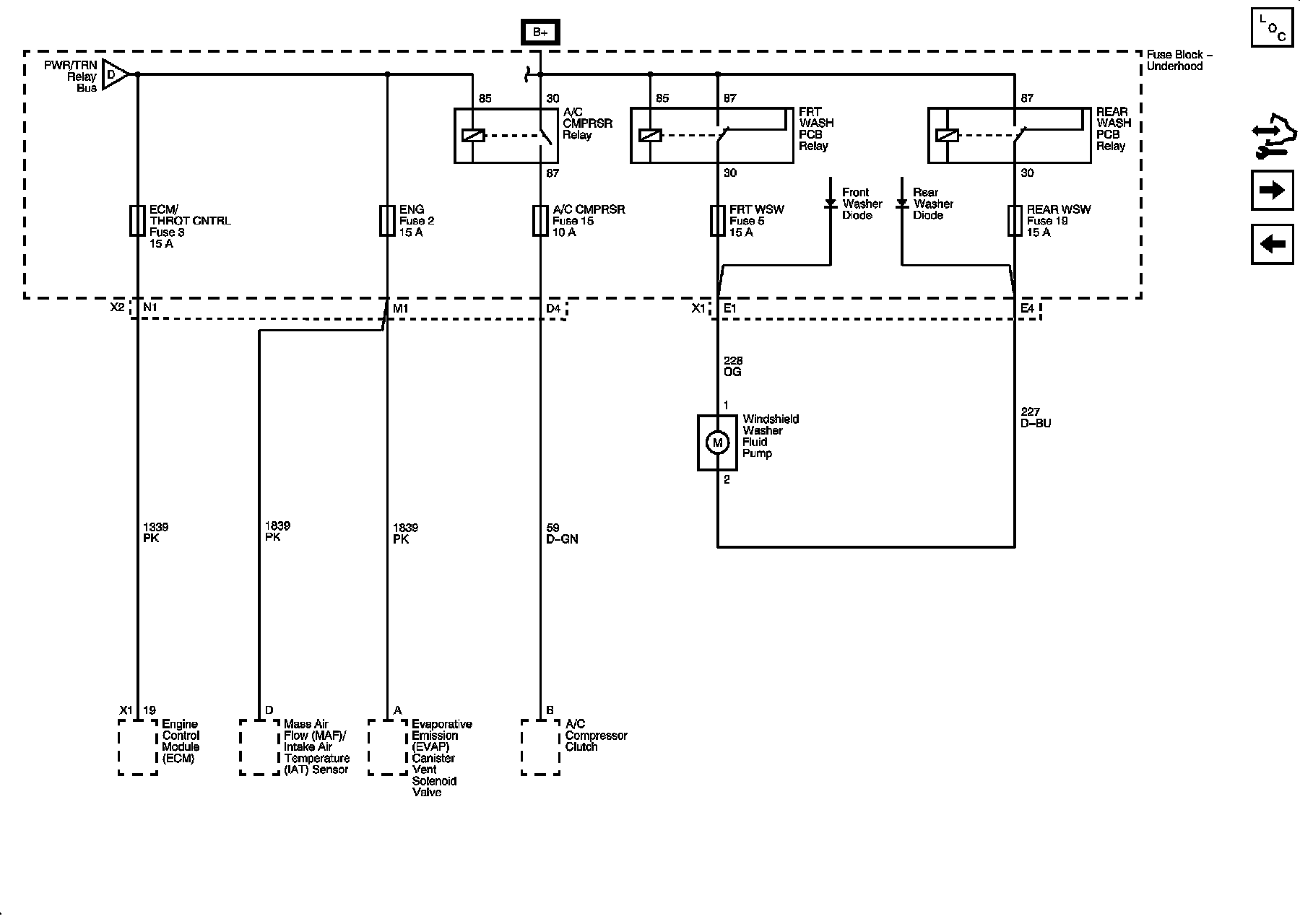 ECM/THROT CNTRL, ENG A/C CMPRSR, FRT WSW and REAR WSW Fuses