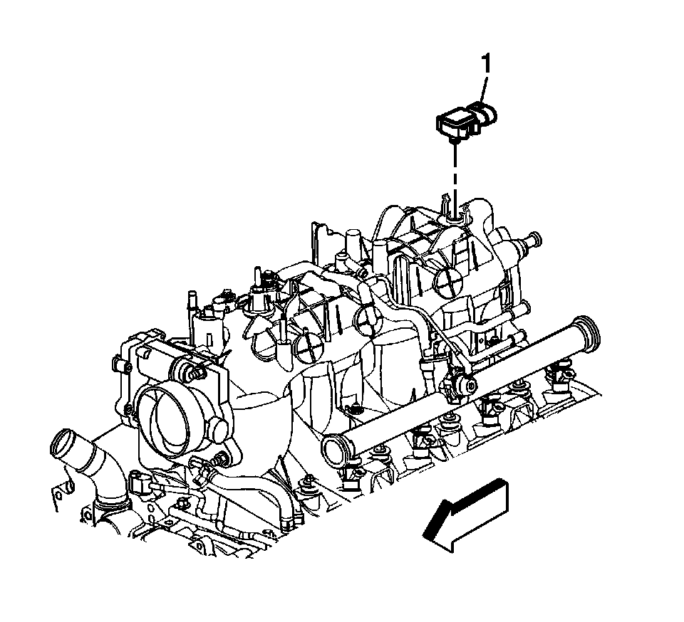 1. Install the MAP sensor (1). Push the MAP sensor down in order to engage the sensor into the retainer.