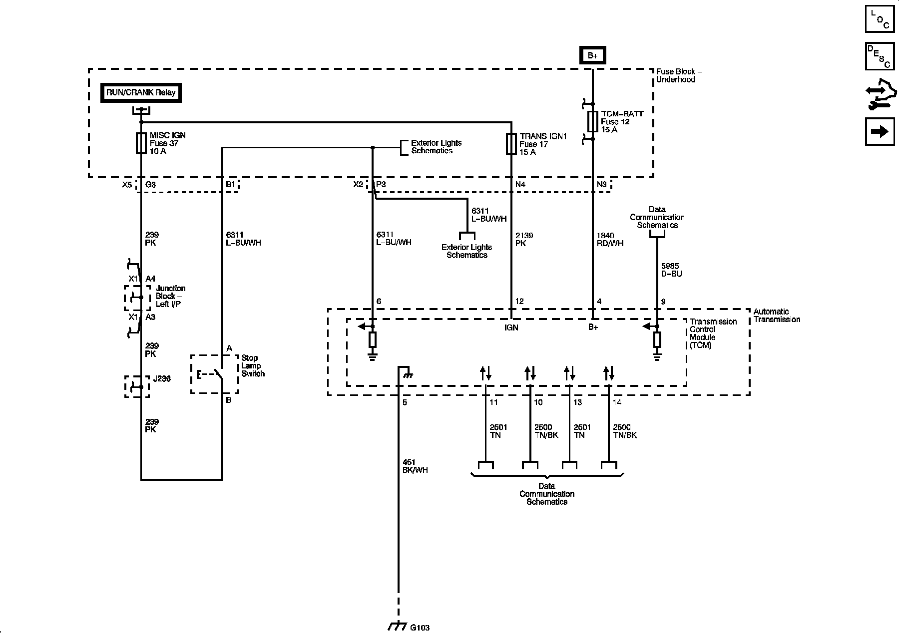 Module Power, Ground, Serial Data and Stop Lamp Signal