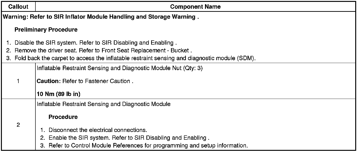 Inflatable Restraint Sensing and Diagnostic Module Replacement