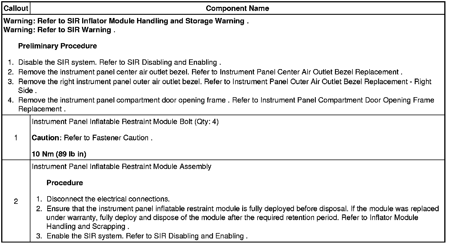 Instrument Panel Inflatable Restraint Module Replacement