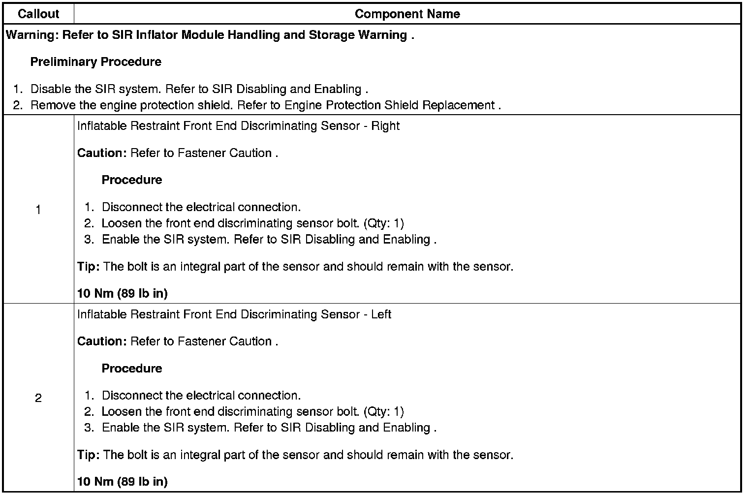 Inflatable Restraint Front End Sensor Replacement