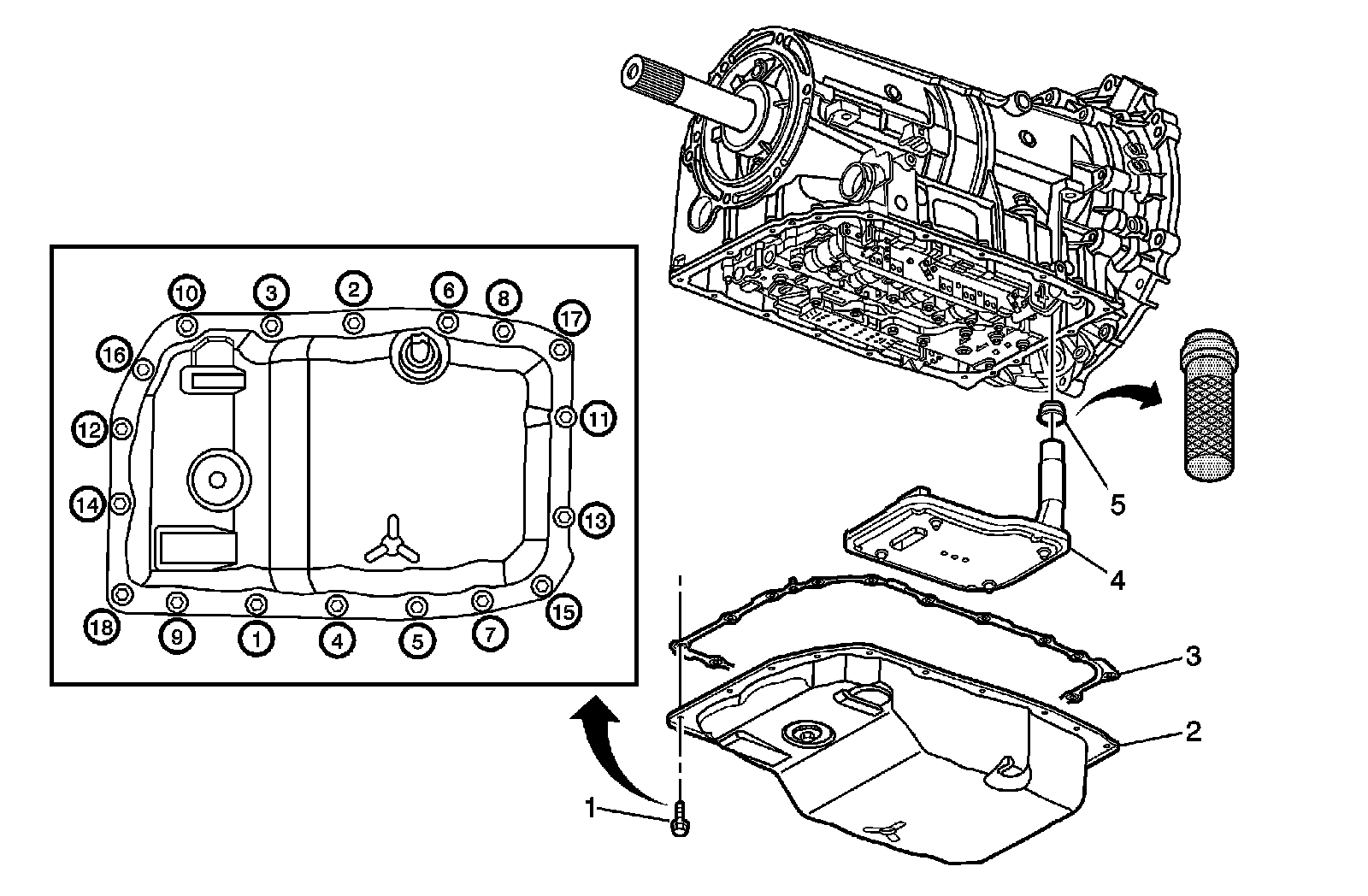 Fluid pan assembly to case assembly 9 Nm (80 lb in)