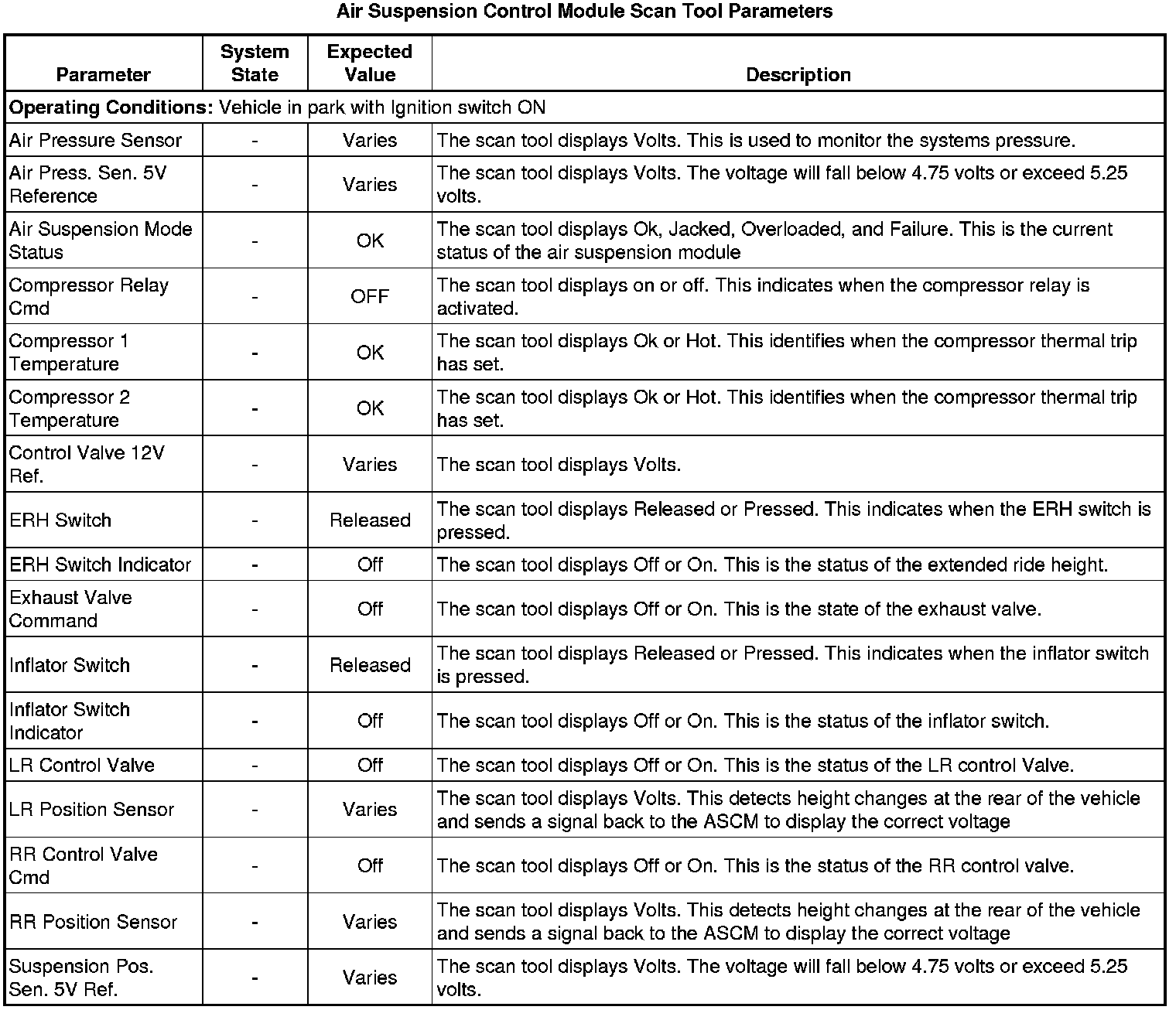 Air Suspension Control Module Scan Tool Information